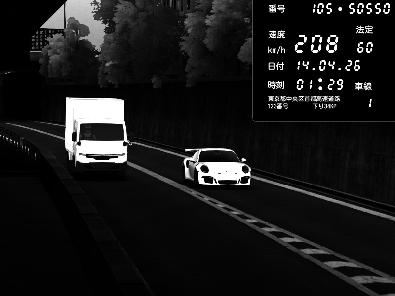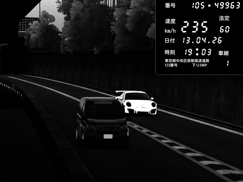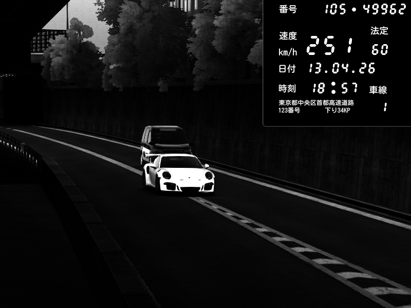 | 2026/04/13 19:12 | C1外回り 京橋 | 230 / 60 km/h | SiR.jp | Porsche 911 GT3 RS | CAPTURE |