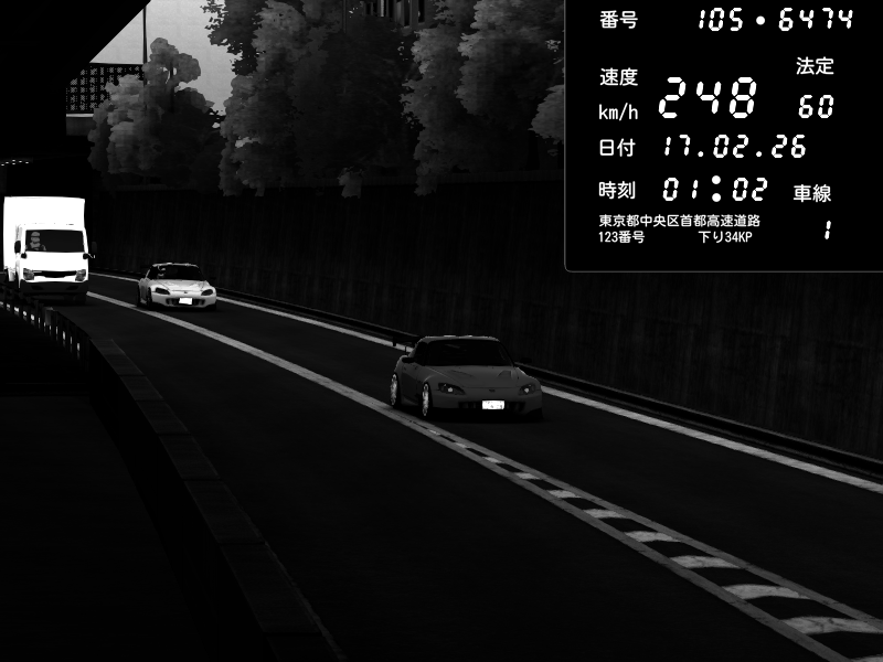 | 2026/02/16 08:21 | C1外回り 京橋 | 233 / 60 km/h | ナイトシフト | Honda S2000 (AP2 - Legendary) | CAPTURE |