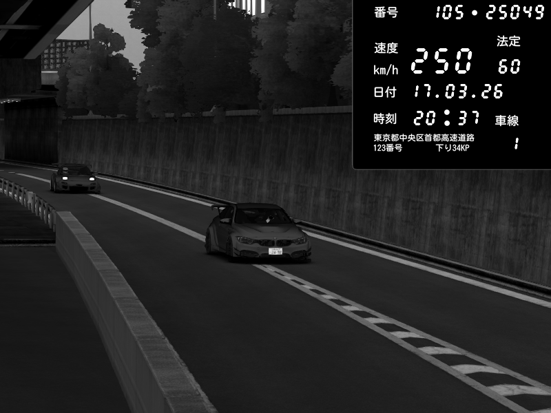 | 2026/03/17 20:37 | C1外回り 京橋 | 250 / 60 km/h | Player | BMW M4 crash.Sp Varis Widebody | CAPTURE |