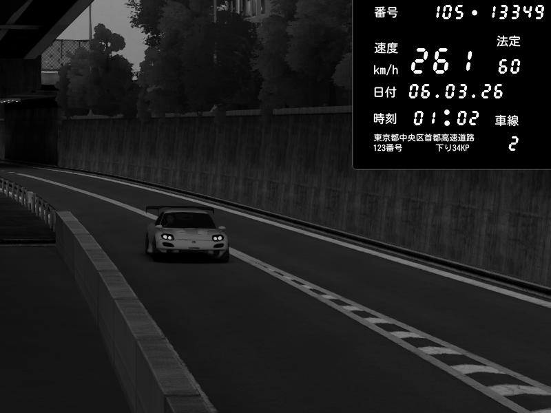 | 2026/03/06 01:02 | C1外回り 京橋 | 261 / 60 km/h | Giga Nigga | Mazda RX-7 FD3S RE Amemiya | CAPTURE |