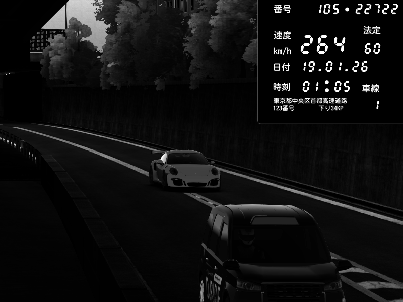 | 2026/01/19 01:05 | C1外回り 京橋 | 264 / 60 km/h | skr | Porsche 911 GT3 RS | CAPTURE |