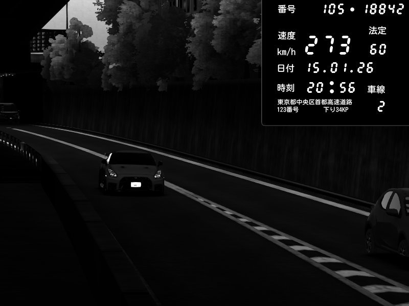 | 2026/01/15 20:56 | C1外回り 京橋 | 273 / 60 km/h | ◯コ◯コみさき | Nissan GT-R NISMO 2017 | CAPTURE |
