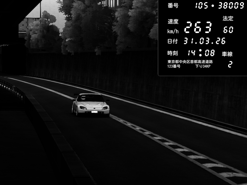 | 2026/03/31 14:08 | C1外回り 京橋 | 263 / 60 km/h | toru-murakami | Honda S2000 (AP2 - Legendary) | CAPTURE |