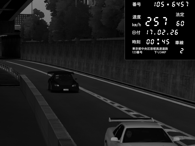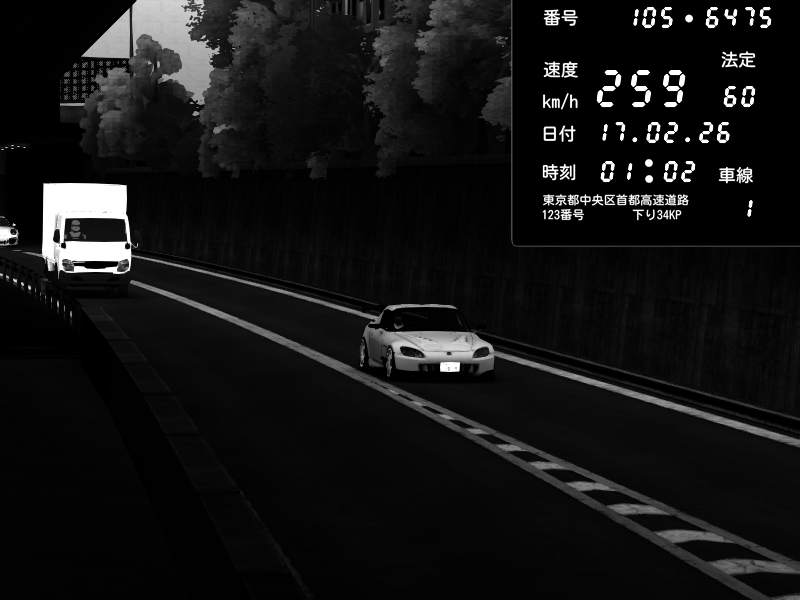 | 2026/02/16 08:45 | C1外回り 京橋 | 263 / 60 km/h | ナイトシフト | Honda S2000 (AP2 - Legendary) | CAPTURE |