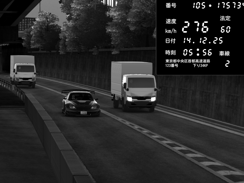 | 2025/12/14 11:31 | C1外回り 京橋 | 260 / 60 km/h | zeka | Honda S2000 (AP2 - Legendary) | CAPTURE |