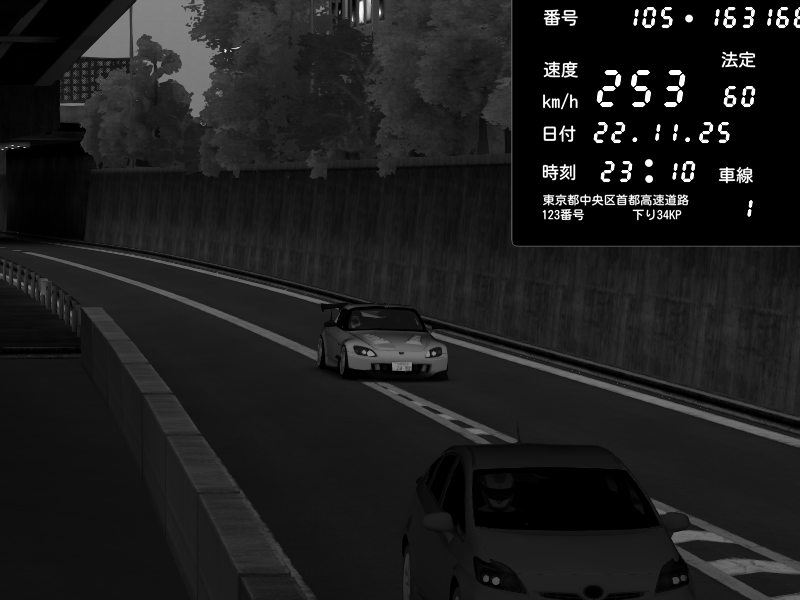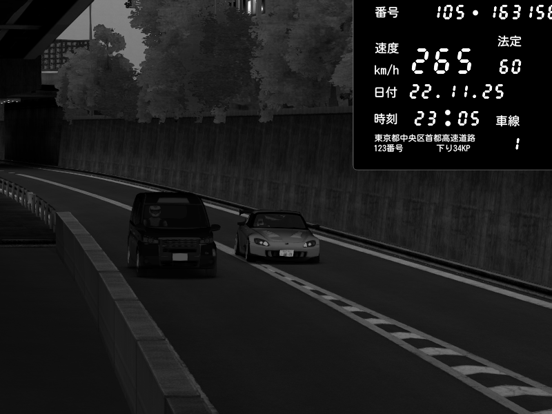 | 2025/11/22 23:05 | C1外回り 京橋 | 265 / 60 km/h | touzai | Honda S2000 (AP2 - Legendary) | CAPTURE |