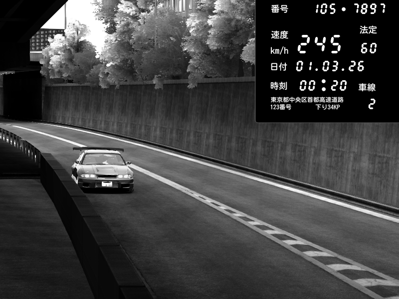 | 2026/03/01 00:20 | C1外回り 京橋 | 245 / 60 km/h | Kurokabe | Nissan Skyline GTR R33 (S3 - Wangan) | CAPTURE |