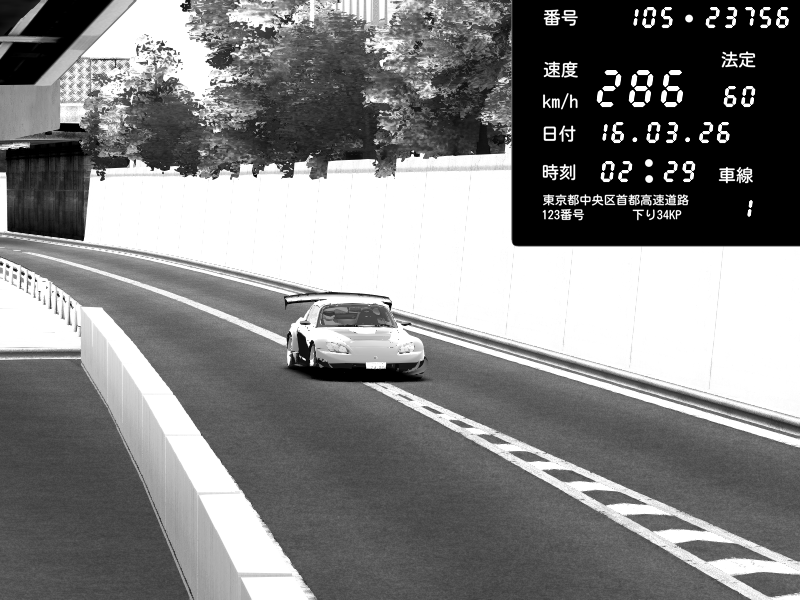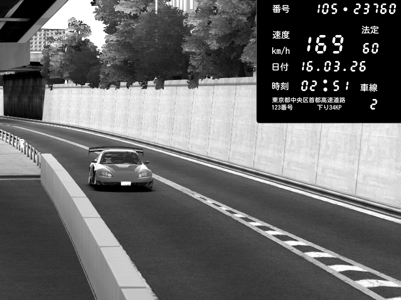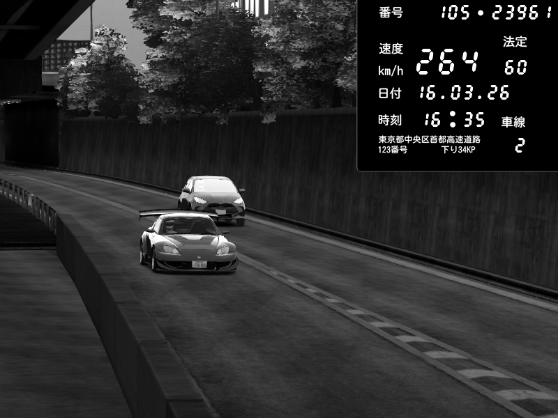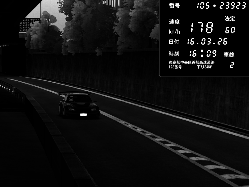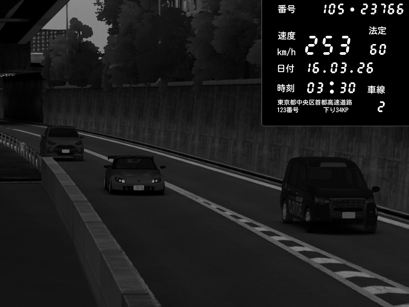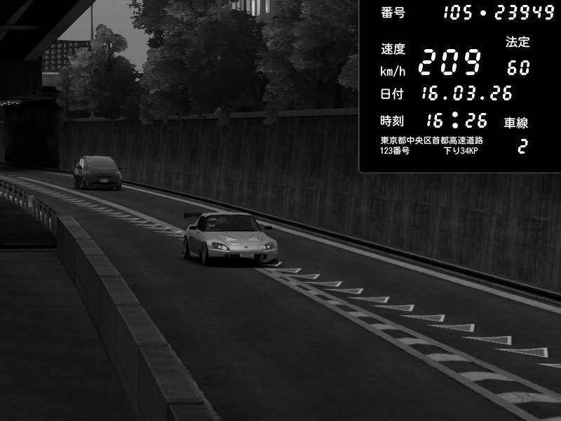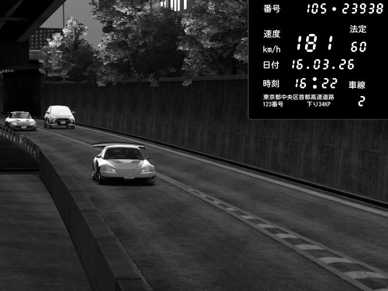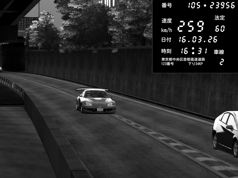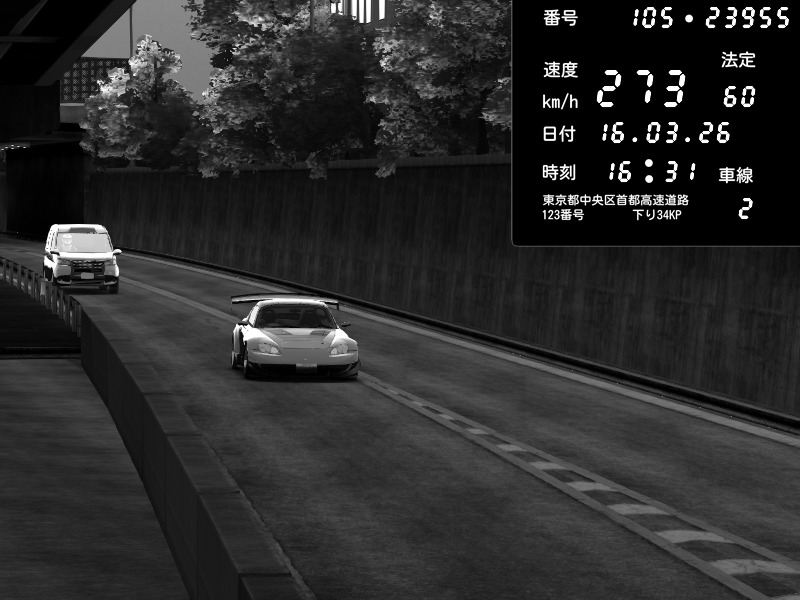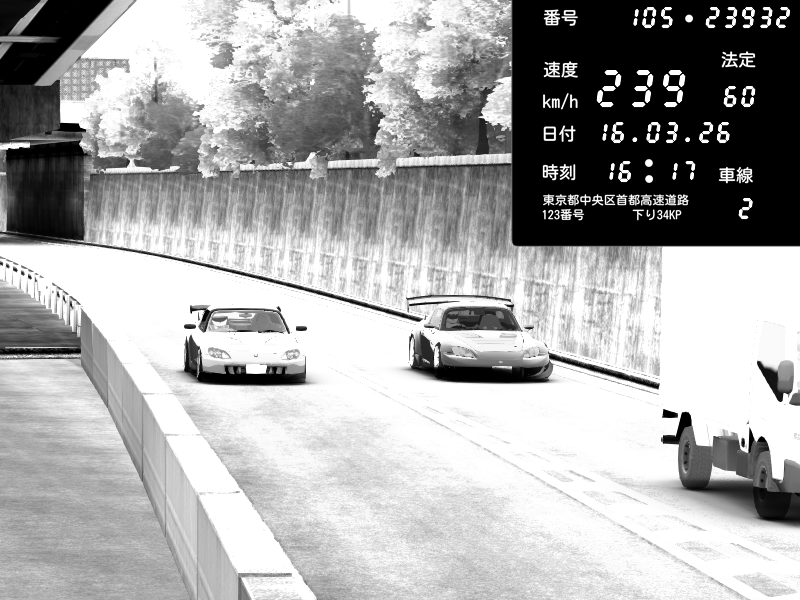 | 2026/03/16 16:31 | C1外回り 京橋 | 259 / 60 km/h | J.Sonny | Honda S2000 Turbo GT1 Amuse (AP1) | CAPTURE |