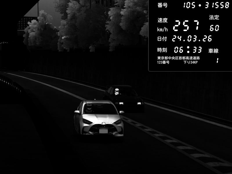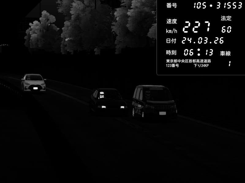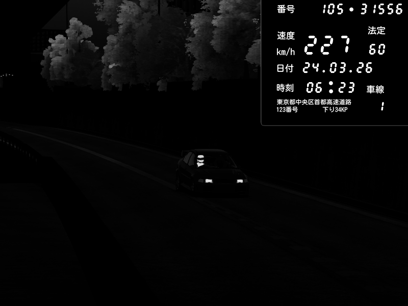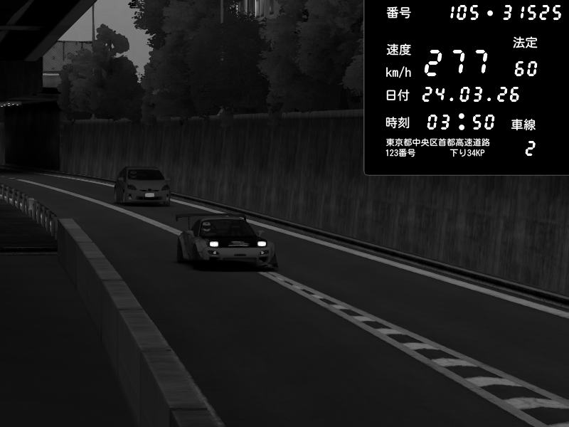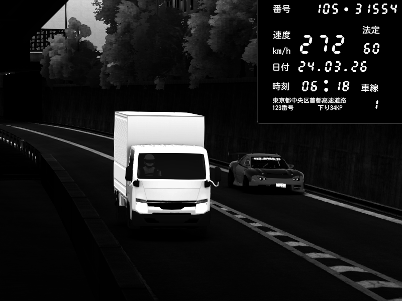 | 2026/03/24 06:18 | C1外回り 京橋 | 272 / 60 km/h | Player | Pit Road M - Mitsubishi GTO Twin Turbo | CAPTURE |