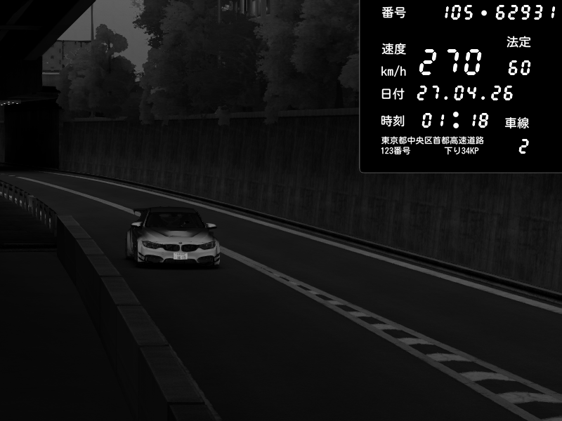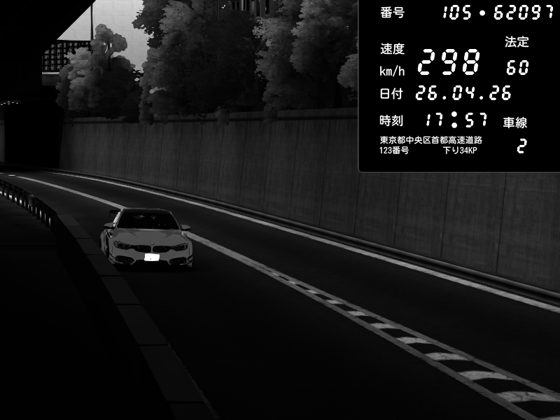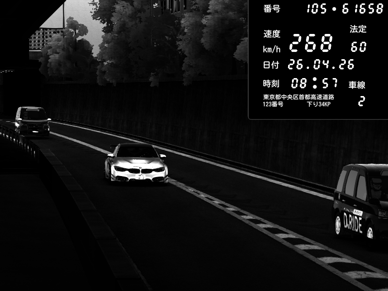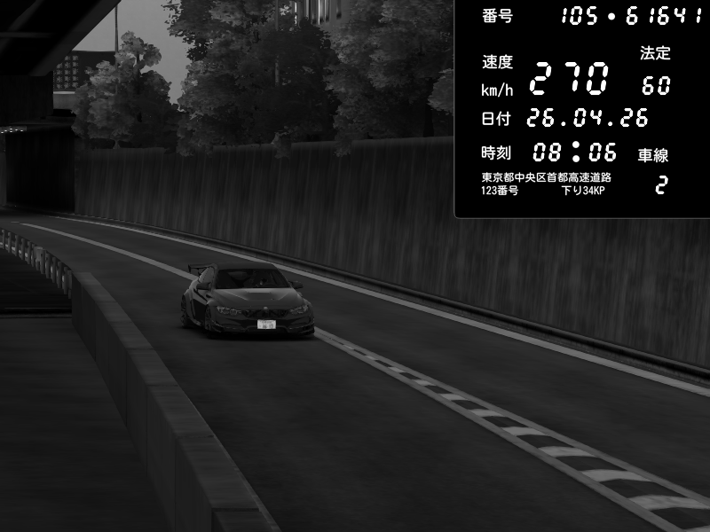 | 2026/04/26 08:57 | C1外回り 京橋 | 268 / 60 km/h | boo481130 | BMW M4 crash.Sp Varis Widebody | CAPTURE |