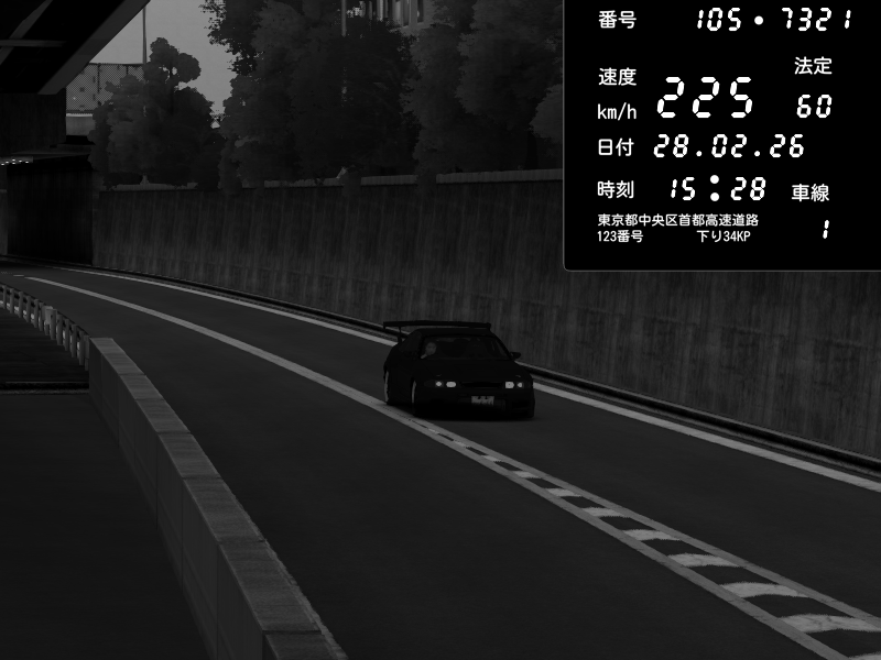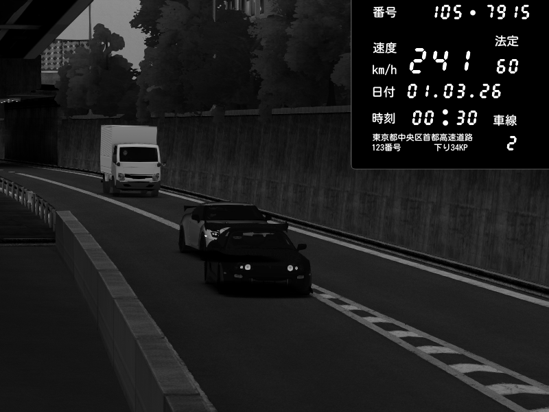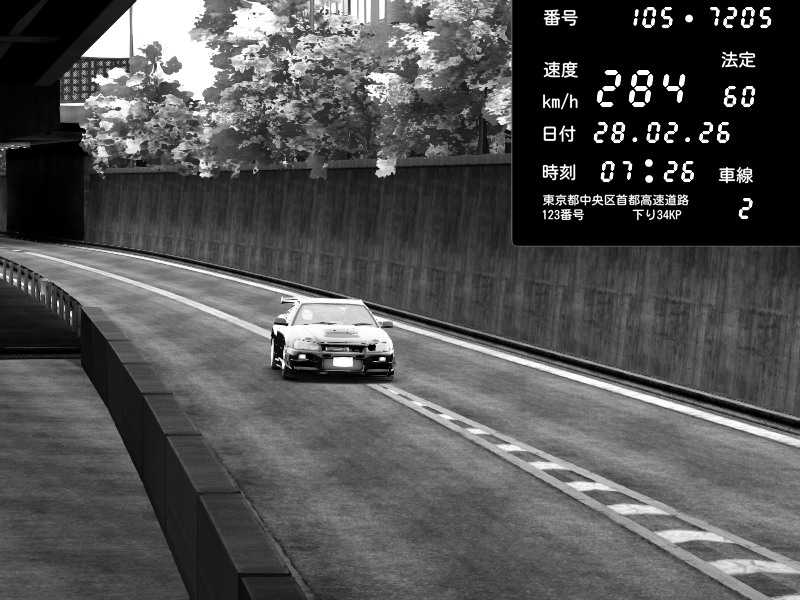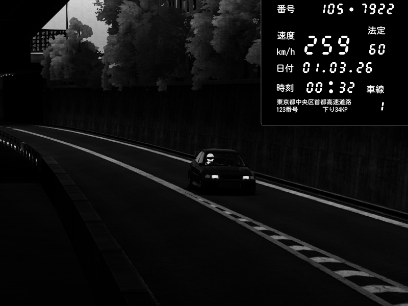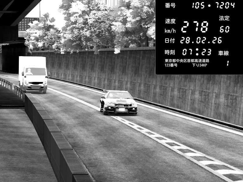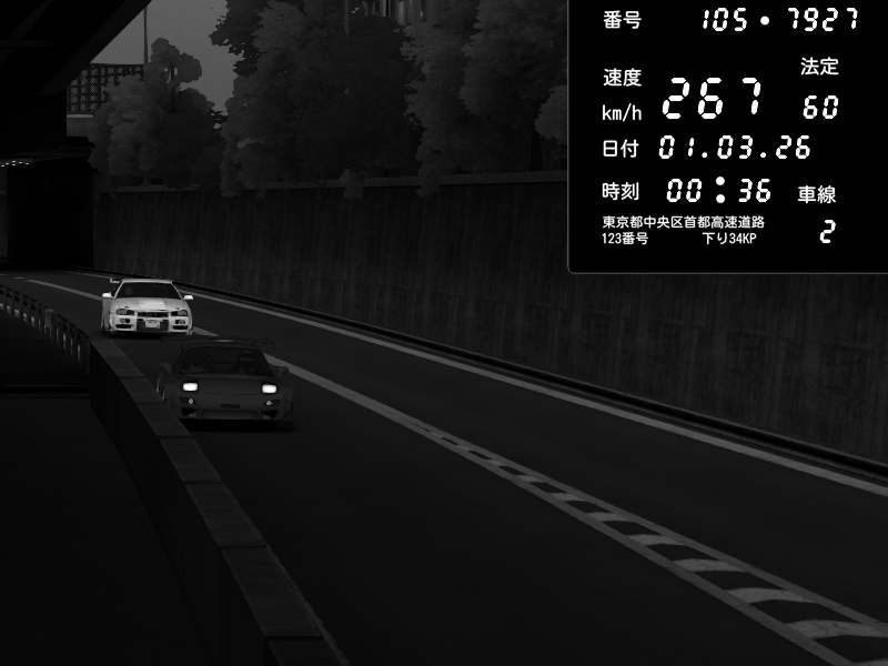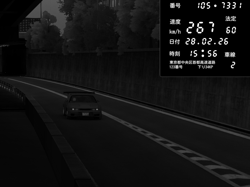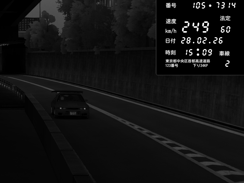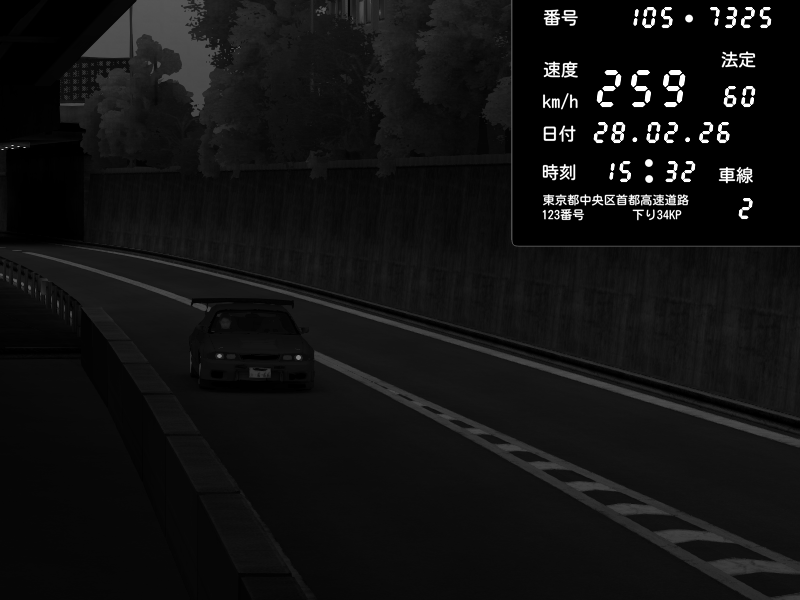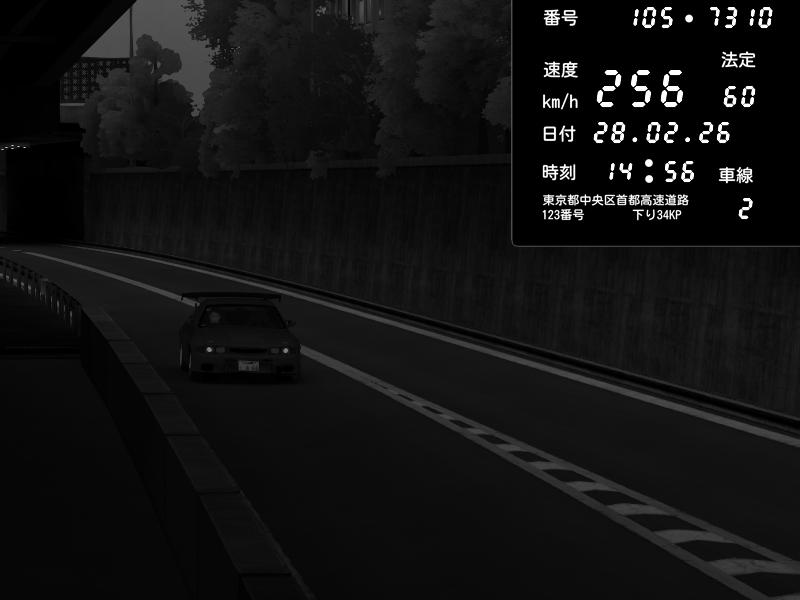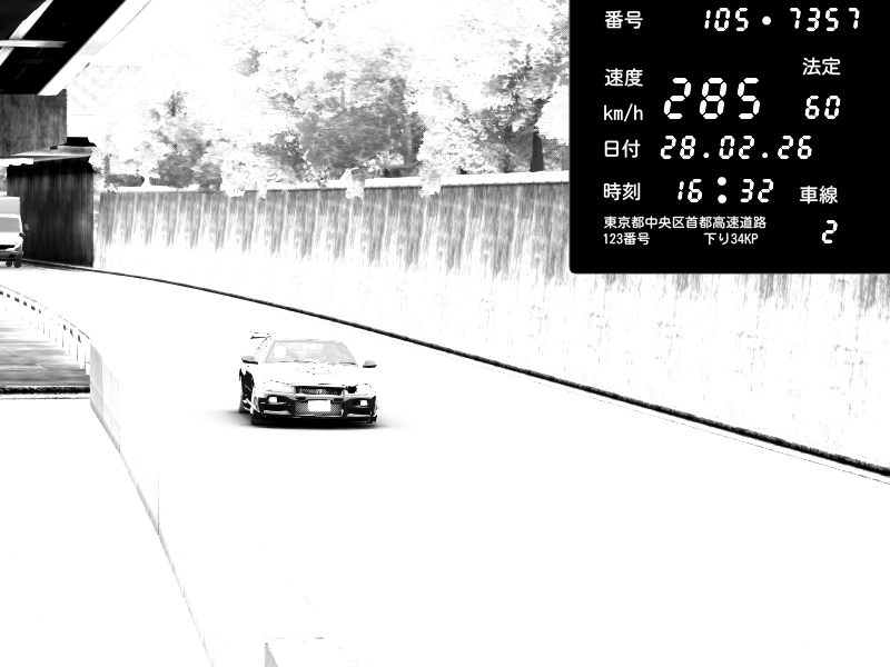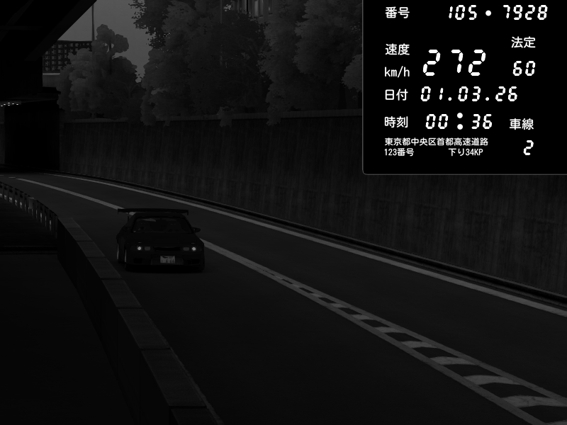 | 2026/03/01 00:36 | C1外回り 京橋 | 272 / 60 km/h | Kurokabe | Nissan Skyline GTR R33 (S3 - Wangan) | CAPTURE |