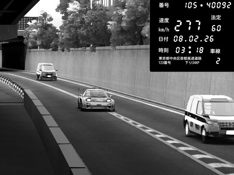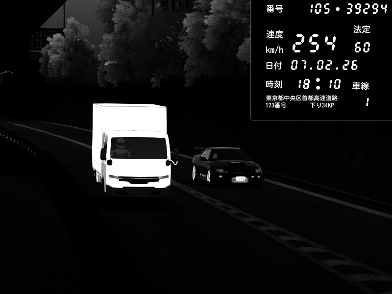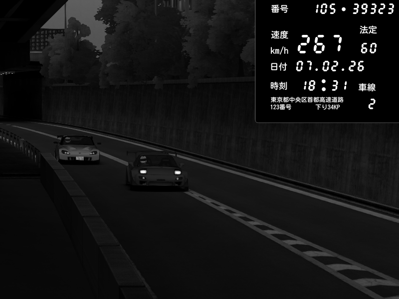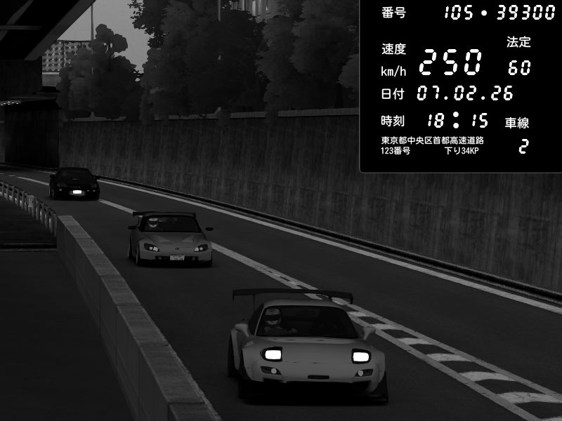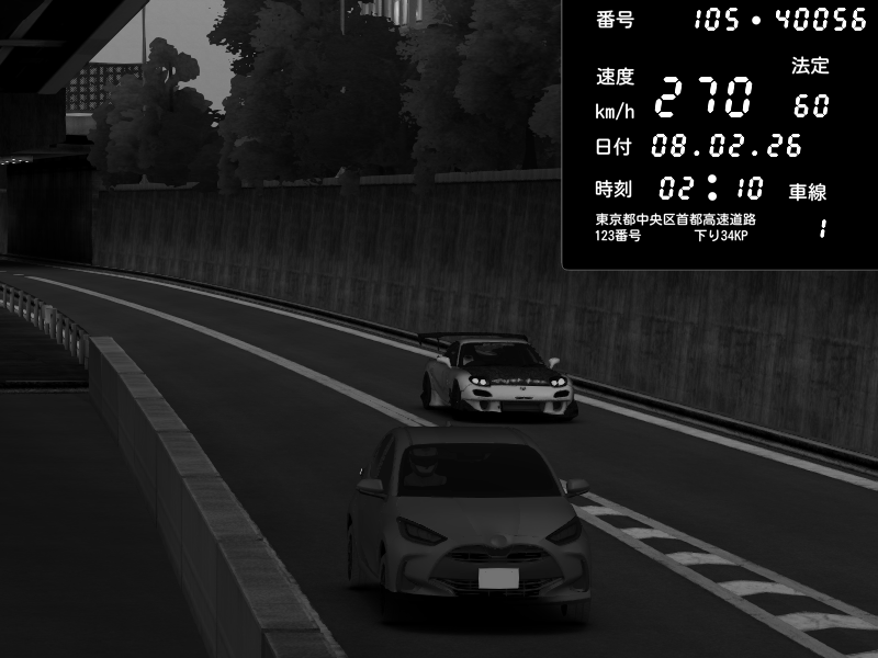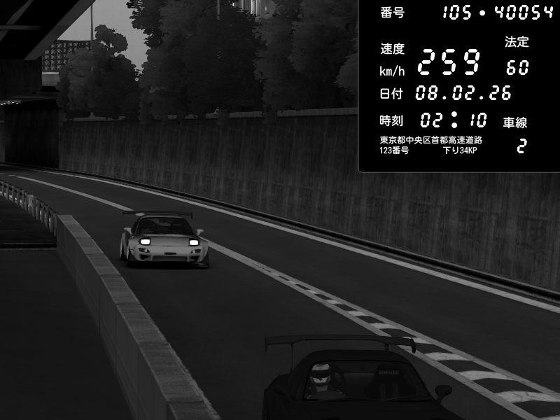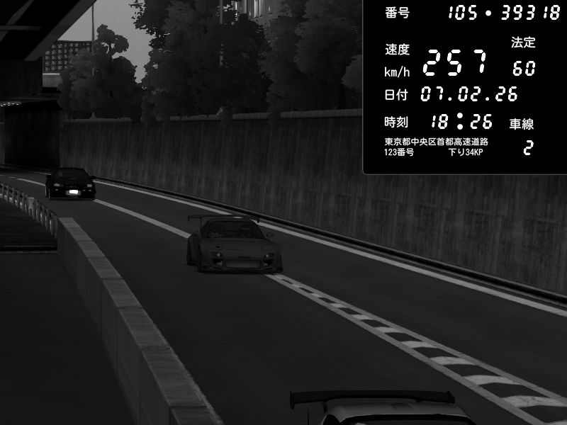 | 2026/02/07 18:45 | C1外回り 京橋 | 241 / 60 km/h | homura | Mazda RX-7 FD3S FEED Afflux GT3 | CAPTURE |