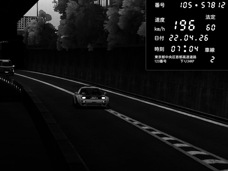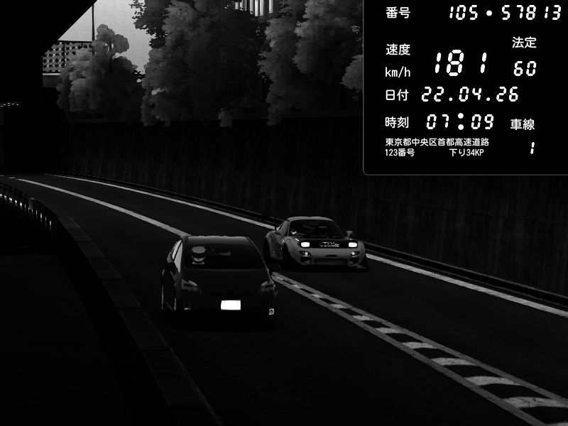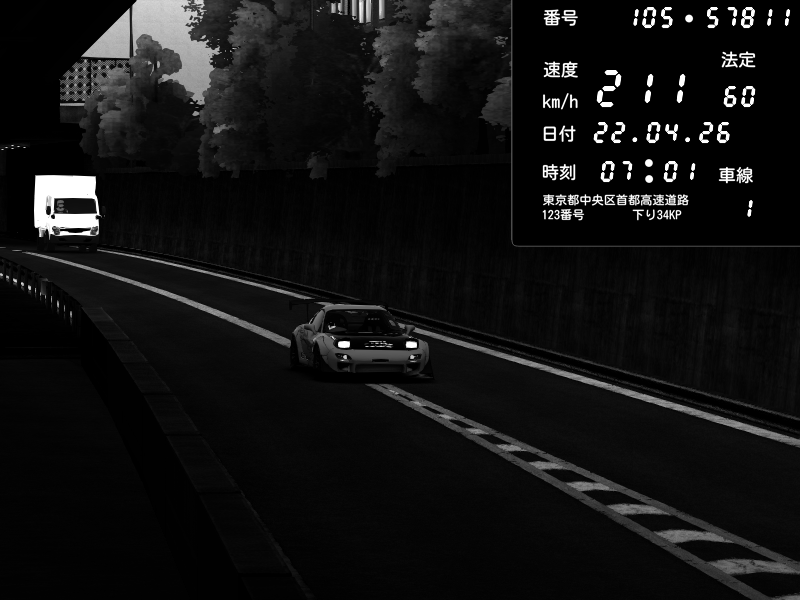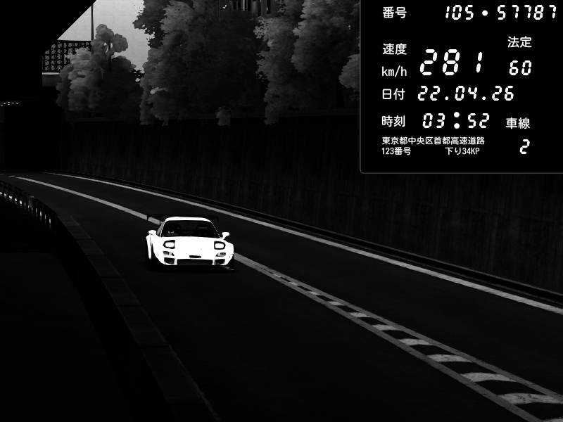 | 2026/04/22 01:11 | C1外回り 京橋 | 169 / 60 km/h | Edward53875 | Mazda RX-7 FD3S FEED Afflux GT3 | CAPTURE |