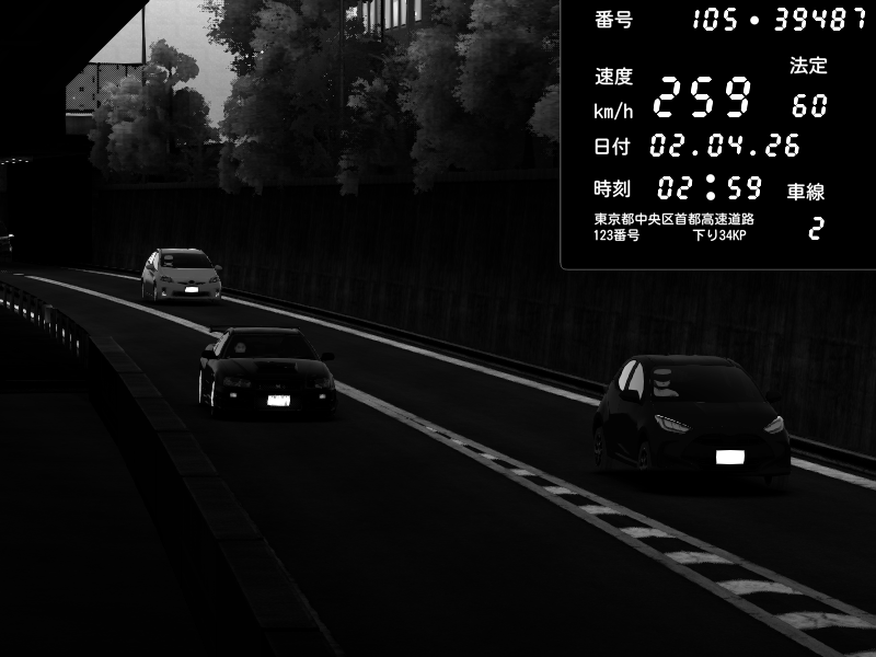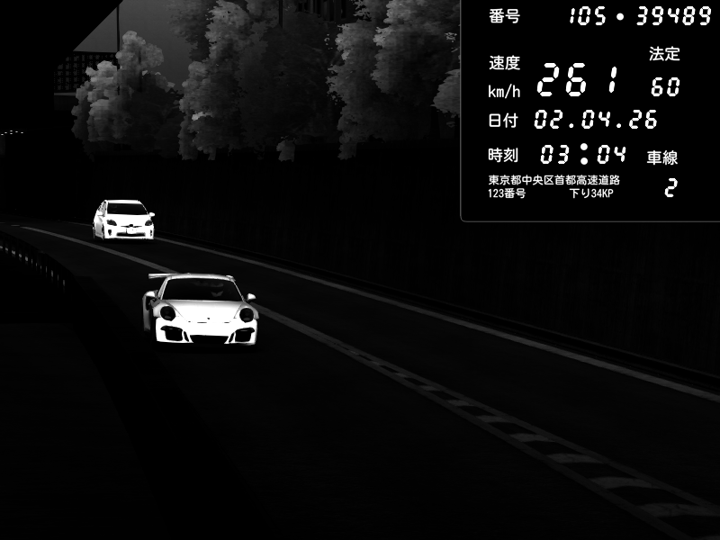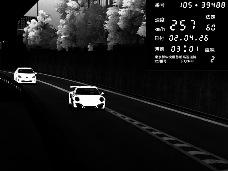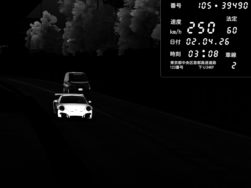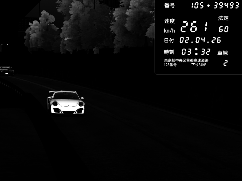 | 2026/04/02 03:01 | C1外回り 京橋 | 257 / 60 km/h | MASUO-JP | Porsche 911 GT3 RS | CAPTURE |