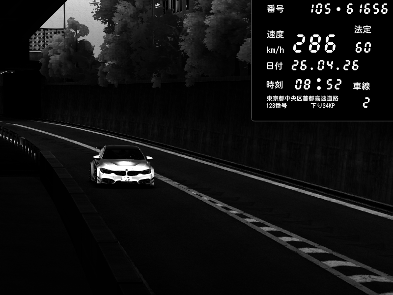| 2026/04/26 08:52 | C1外回り 京橋 | 286 / 60 km/h | boo481130 | BMW M4 crash.Sp Varis Widebody | CAPTURE |