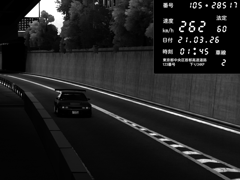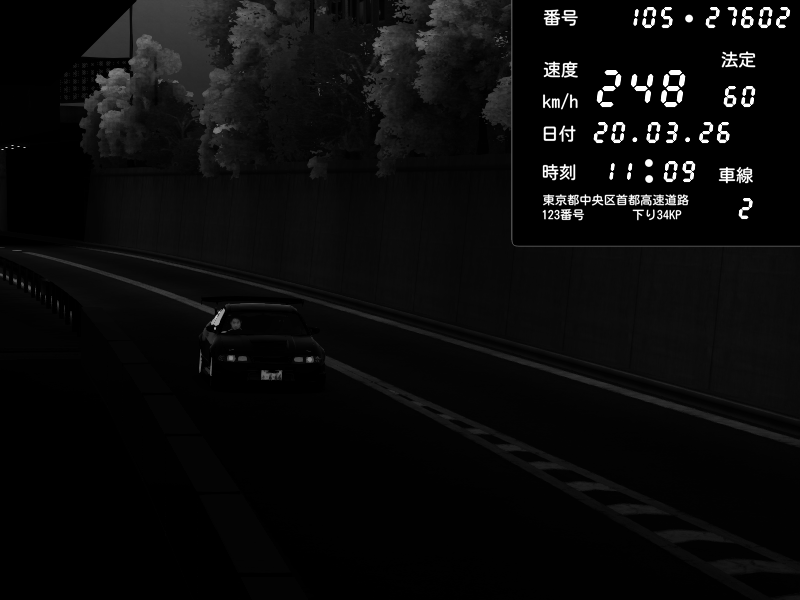 | 2026/03/21 01:45 | C1外回り 京橋 | 262 / 60 km/h | Kurokabe | Nissan Skyline GTR R33 (S3 - Wangan) | CAPTURE |