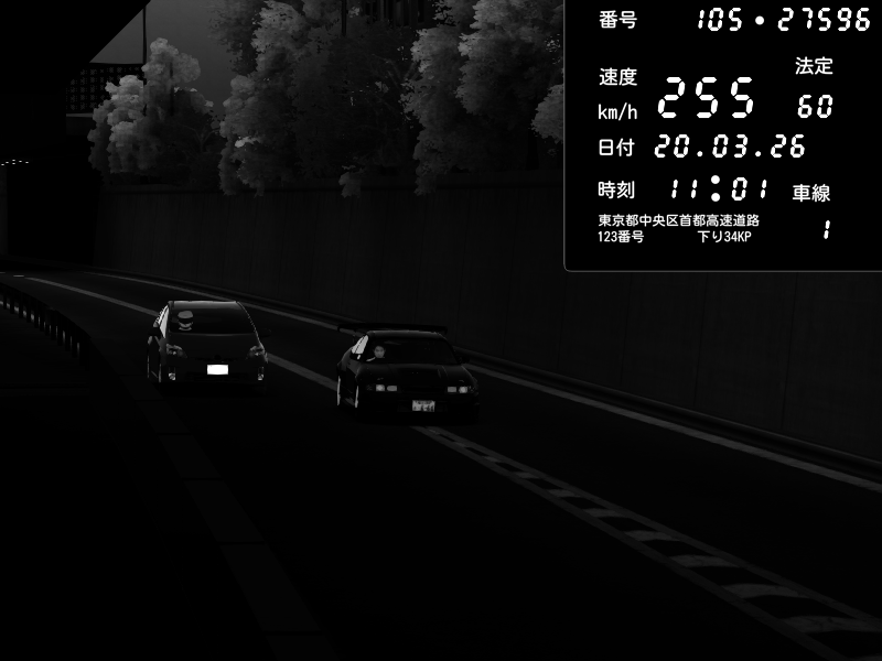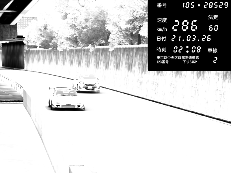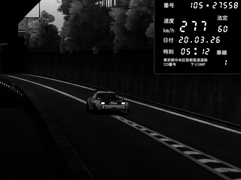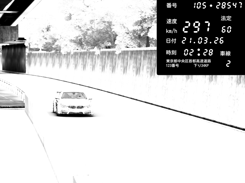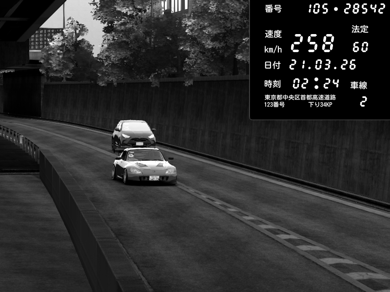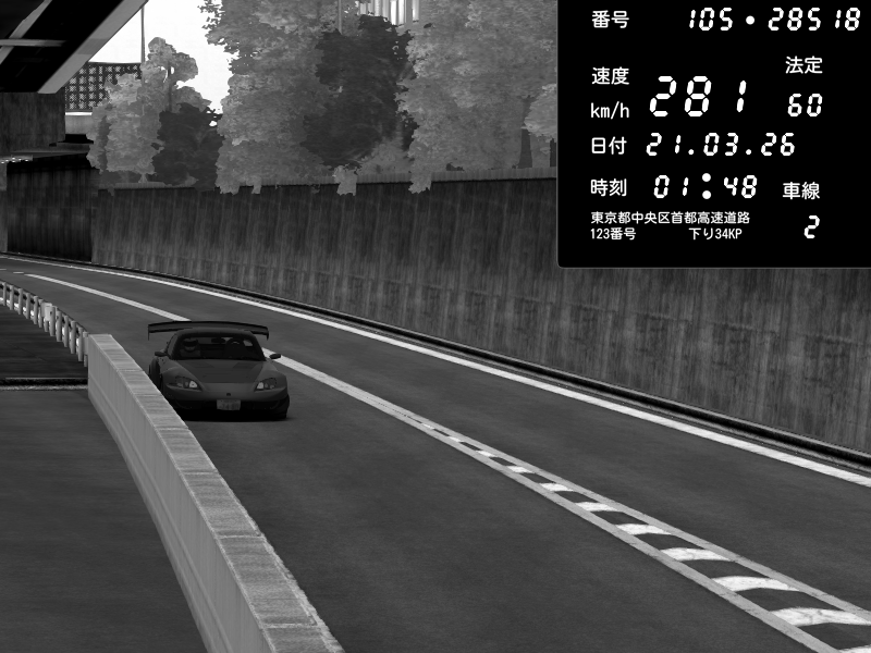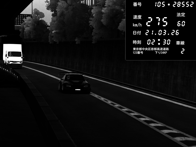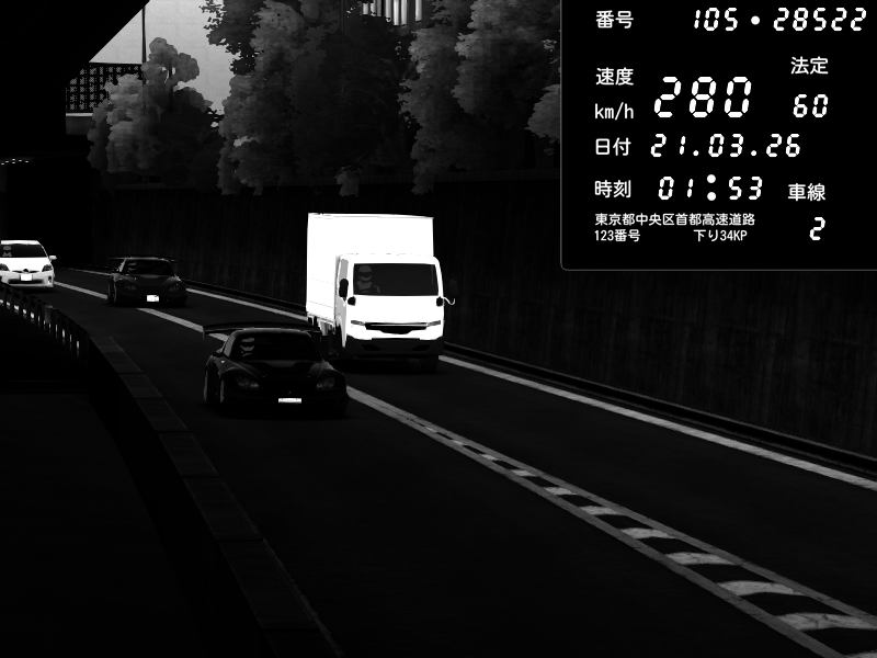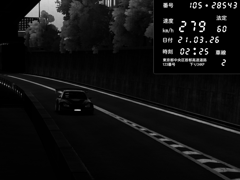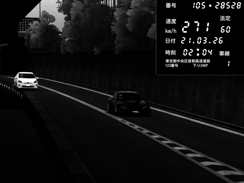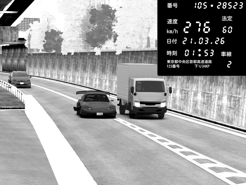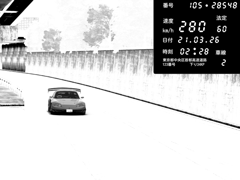 | 2026/03/21 02:28 | C1外回り 京橋 | 280 / 60 km/h | U-0 | Honda S2000 Turbo GT1 Amuse (AP1) | CAPTURE |