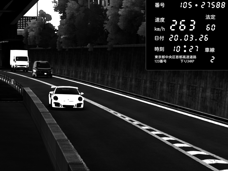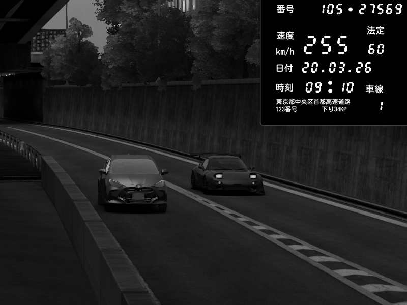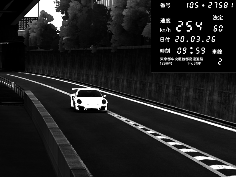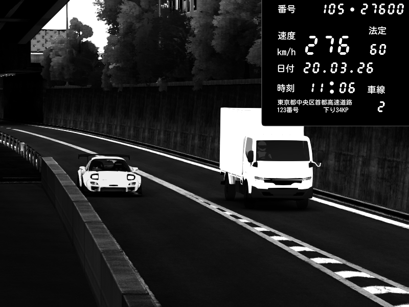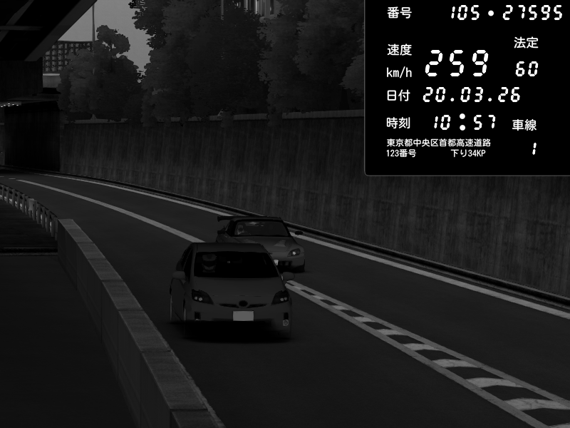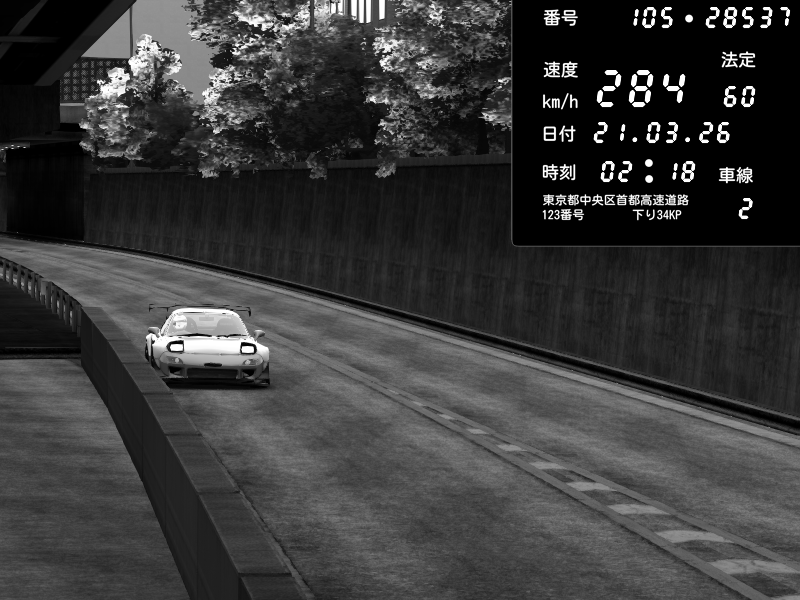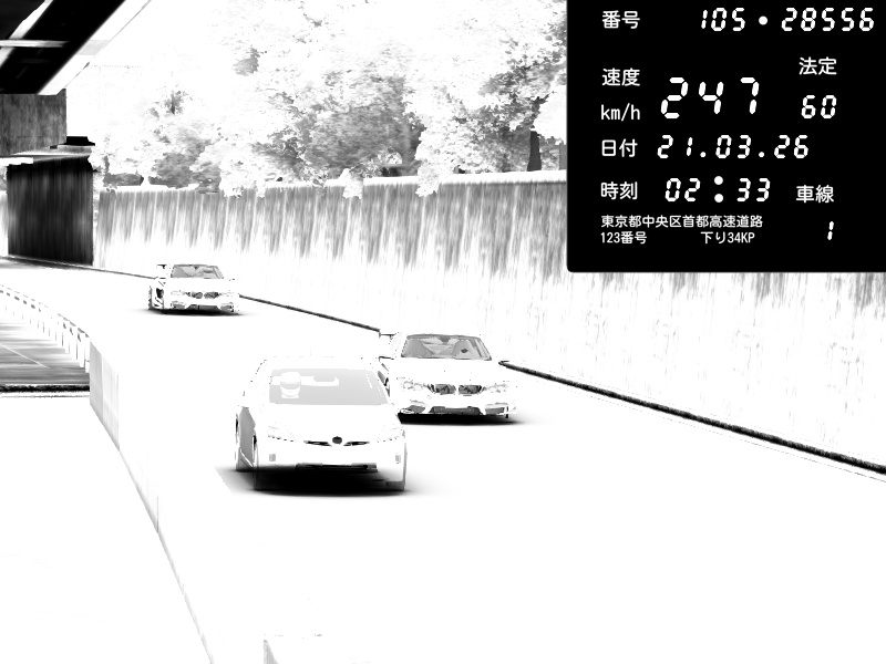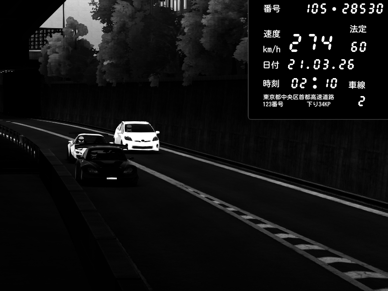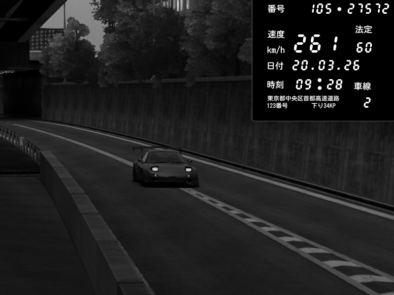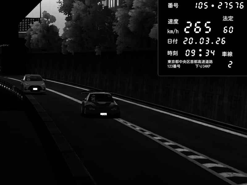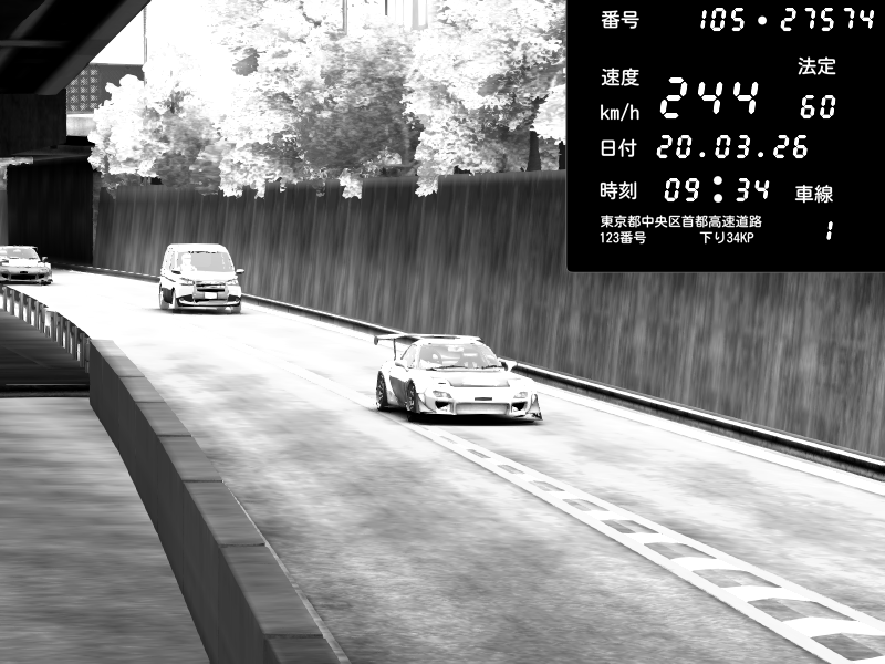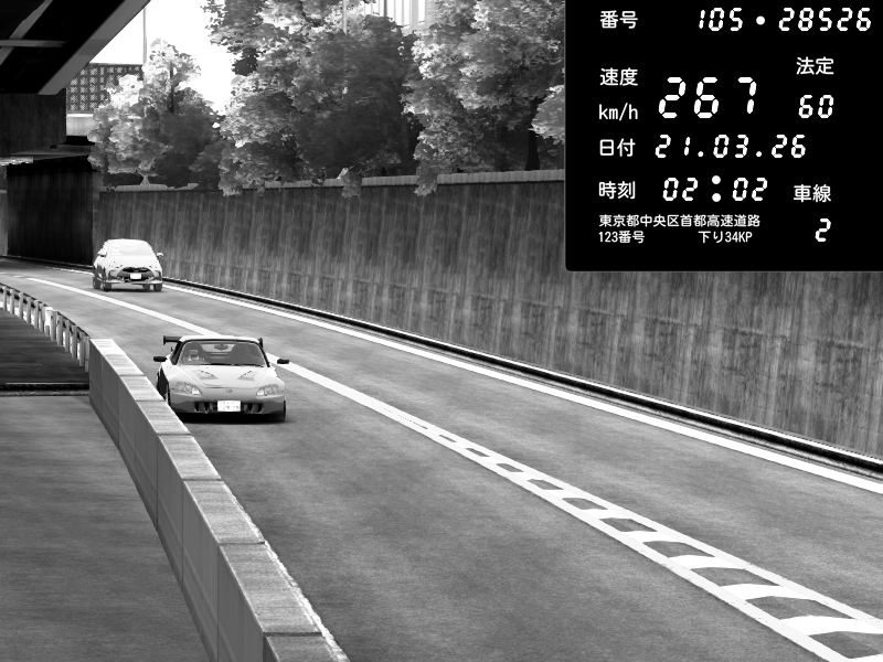 | 2026/03/21 02:28 | C1外回り 京橋 | 280 / 60 km/h | U-0 | Honda S2000 Turbo GT1 Amuse (AP1) | CAPTURE |