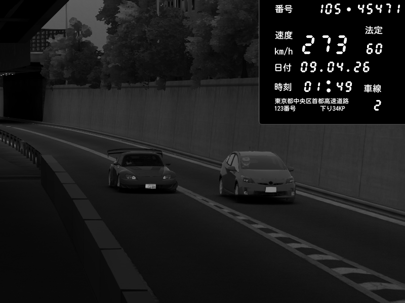 | 2026/04/09 01:49 | C1外回り 京橋 | 273 / 60 km/h | ( ・▽・) | Honda S2000 Turbo GT1 Amuse (AP1) | CAPTURE |