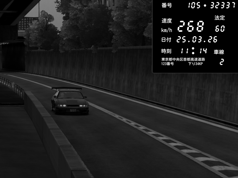 | 2026/03/25 11:14 | C1外回り 京橋 | 268 / 60 km/h | gc8 lover | Nissan Skyline GTR R33 (S3 - Wangan) | CAPTURE |