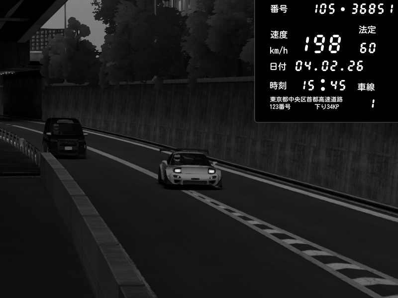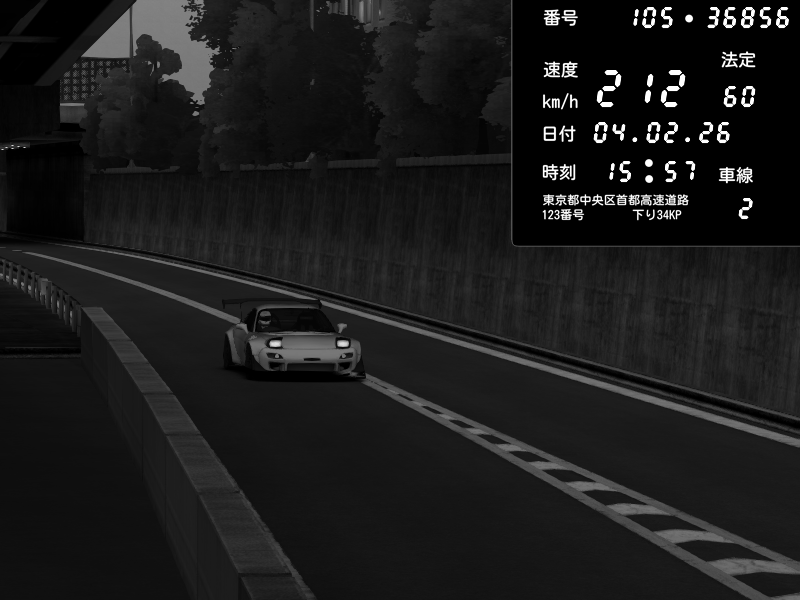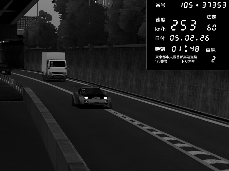 | 2026/02/05 01:48 | C1外回り 京橋 | 253 / 60 km/h | my1l | Mazda RX-7 FD3S FEED Afflux GT3 | CAPTURE |