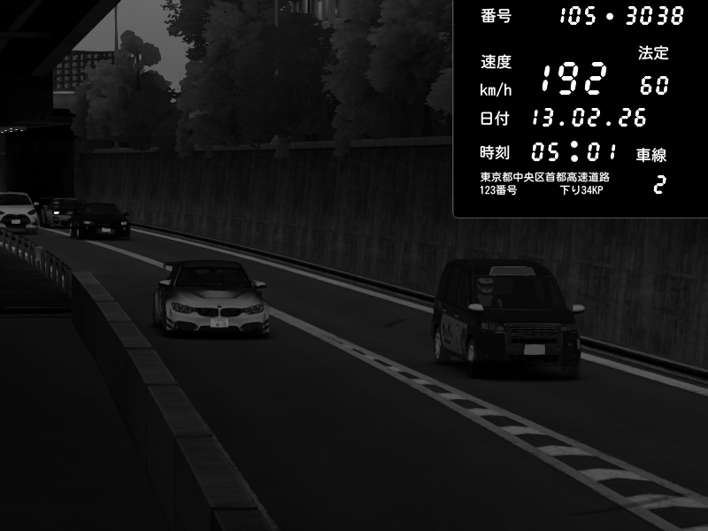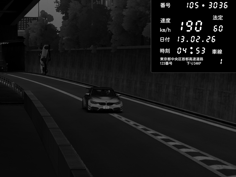 | 2026/02/14 03:04 | C1外回り 京橋 | 181 / 60 km/h | snapdragon | BMW M4 crash.Sp Varis Widebody | CAPTURE |