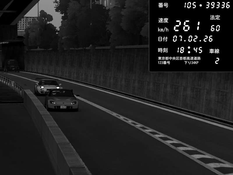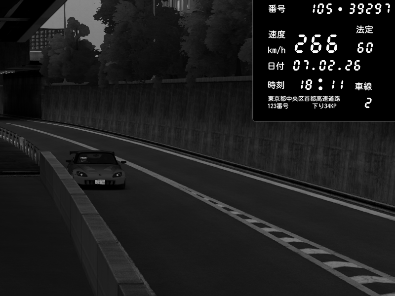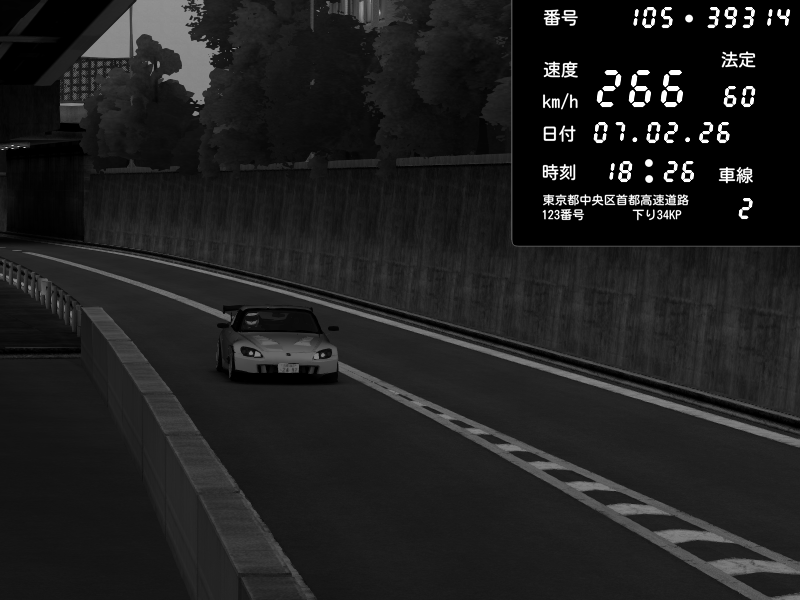 | 2026/02/07 18:26 | C1外回り 京橋 | 266 / 60 km/h | MotorGeeks #2 | Honda S2000 (AP2 - Legendary) | CAPTURE |