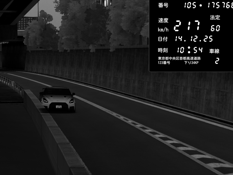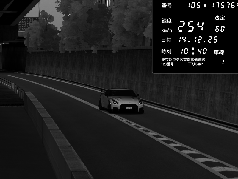| 2025/12/14 10:40 | C1外回り 京橋 | 254 / 60 km/h | 👿悪魔の963👿 | Nissan GT-R NISMO 2017 | CAPTURE |