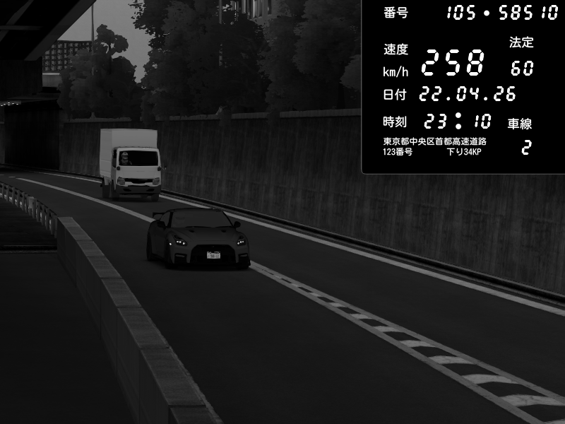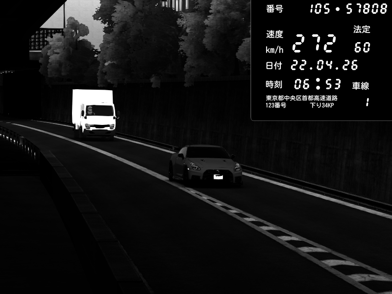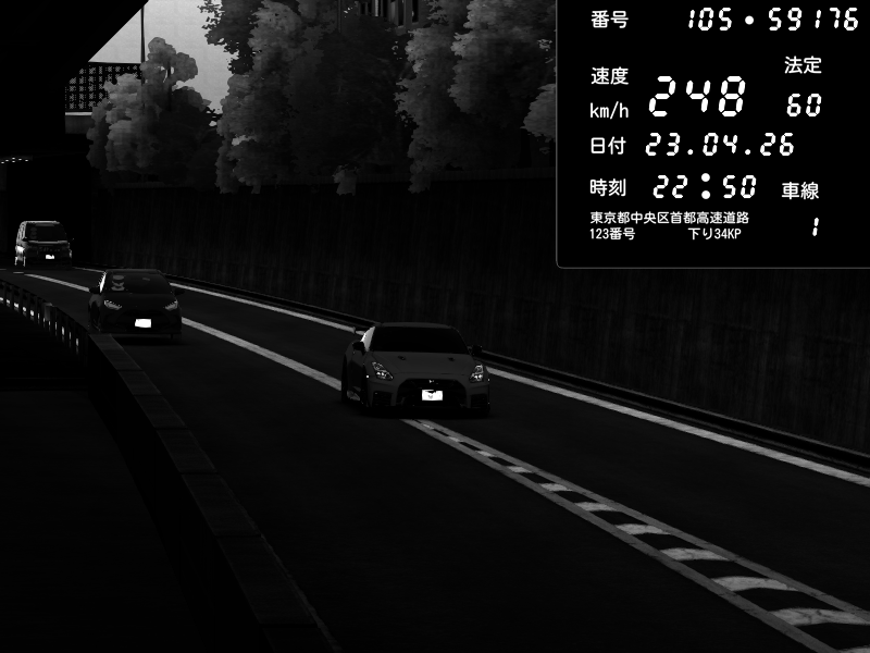 | 2026/04/22 03:13 | C1外回り 京橋 | 256 / 60 km/h | NeuroDeujj | Nissan GT-R NISMO 2017 | CAPTURE |