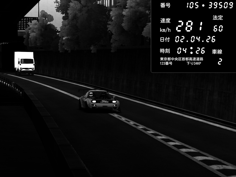| 2026/04/02 04:26 | C1外回り 京橋 | 281 / 60 km/h | Kladzou | Mazda RX-7 FD3S FEED Afflux GT3 | CAPTURE |