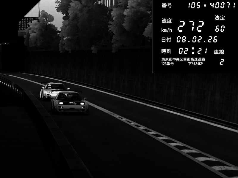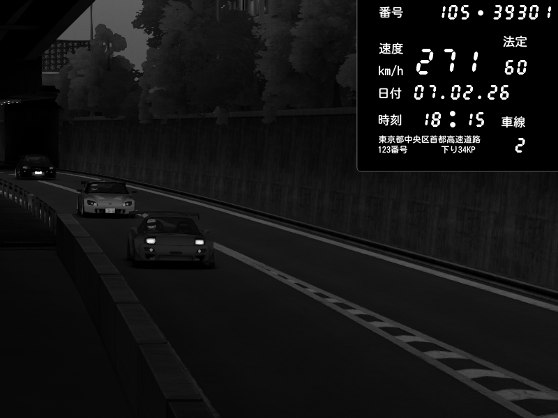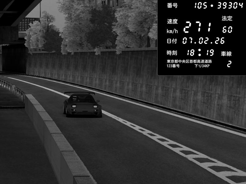 | 2026/02/07 18:15 | C1外回り 京橋 | 271 / 60 km/h | homura | Mazda RX-7 FD3S FEED Afflux GT3 | CAPTURE |