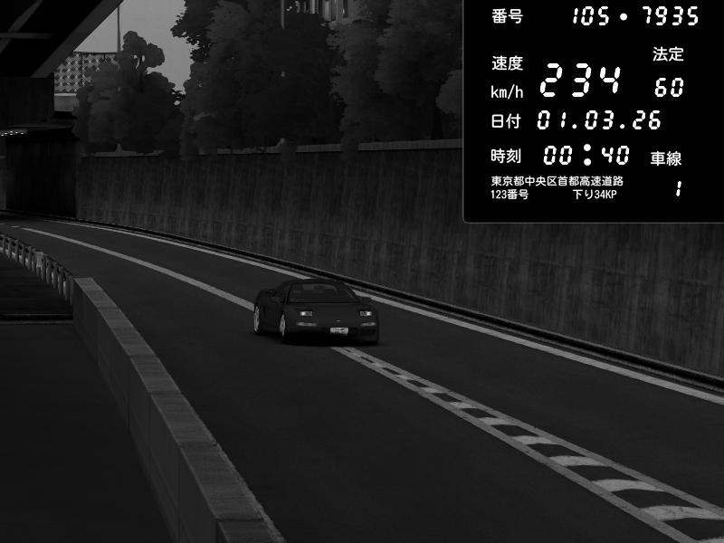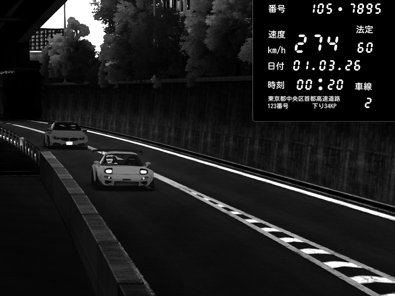 | 2026/03/01 00:40 | C1外回り 京橋 | 234 / 60 km/h | Unchi | Honda NSX [NA1] PVLSX | CAPTURE |