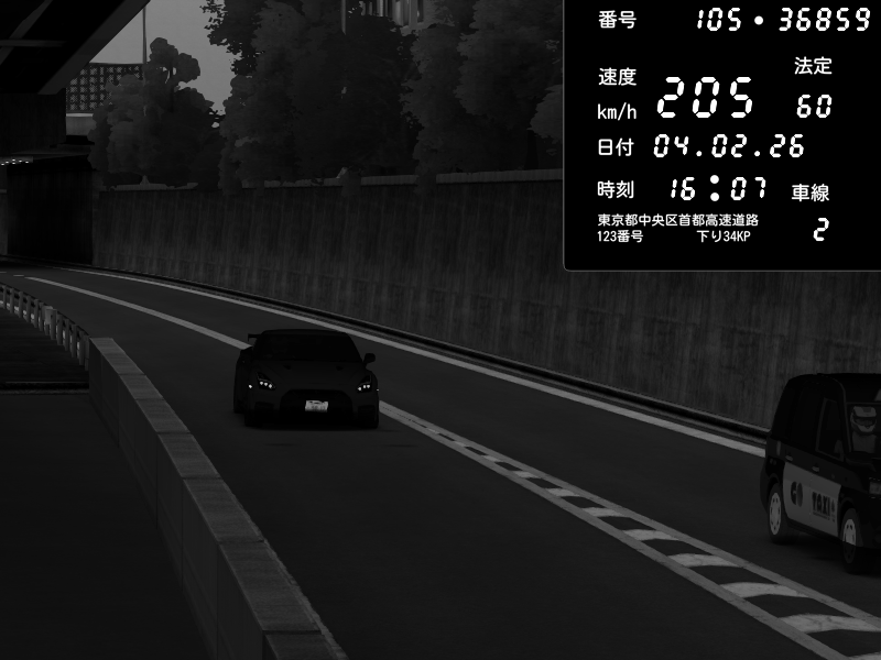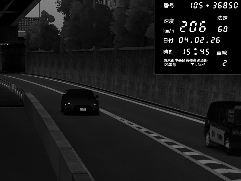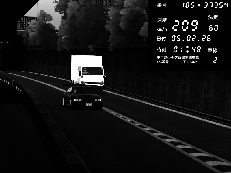 | 2026/02/05 01:48 | C1外回り 京橋 | 209 / 60 km/h | slowly_killer | Nissan Skyline GTR R33 (S3 - Wangan) | CAPTURE |