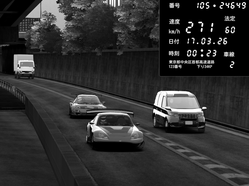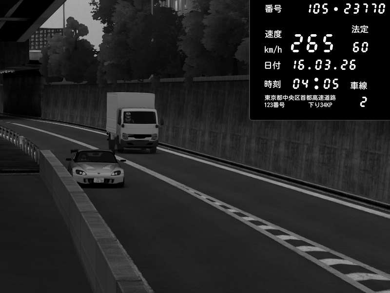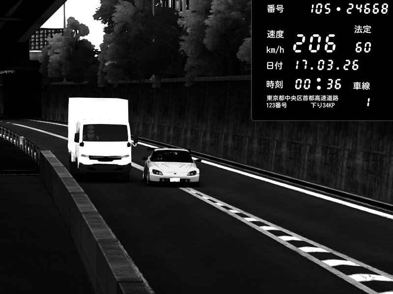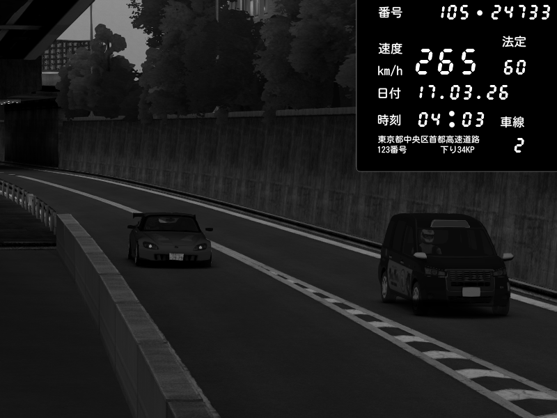 | 2026/03/16 16:27 | C1外回り 京橋 | 274 / 60 km/h | J.Sonny | Honda S2000 Turbo GT1 Amuse (AP1) | CAPTURE |