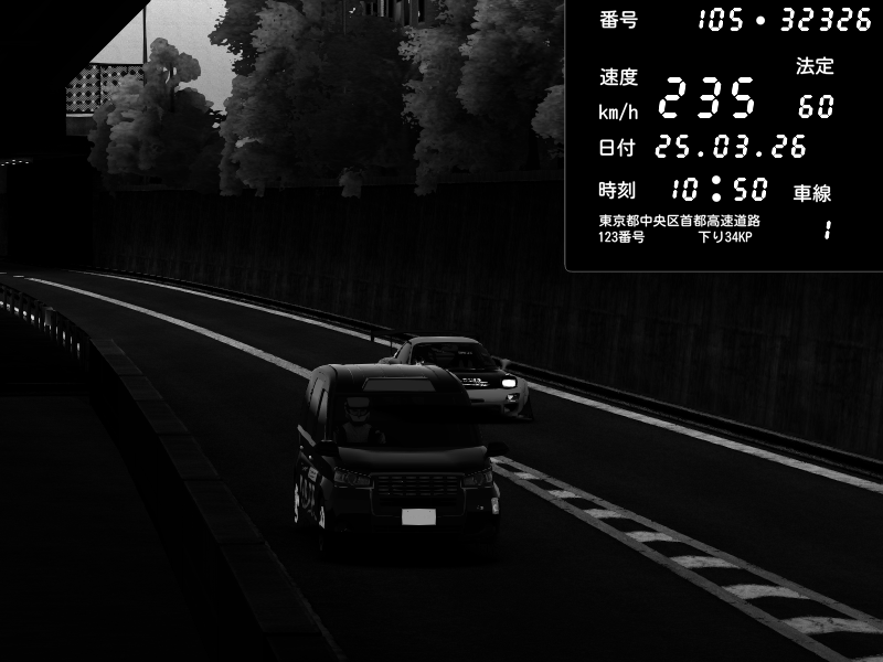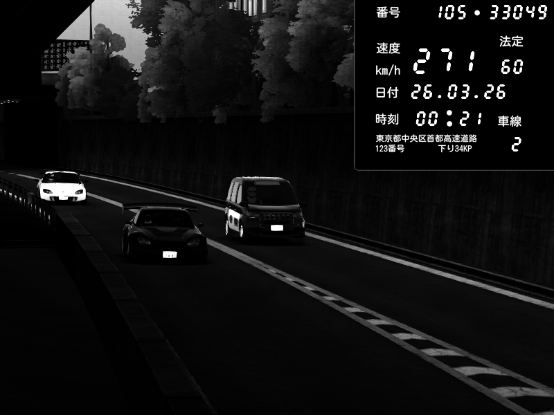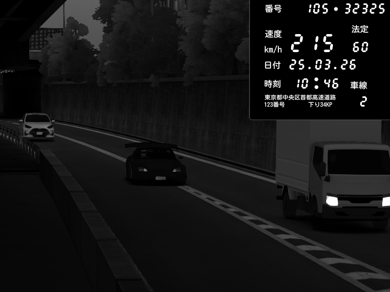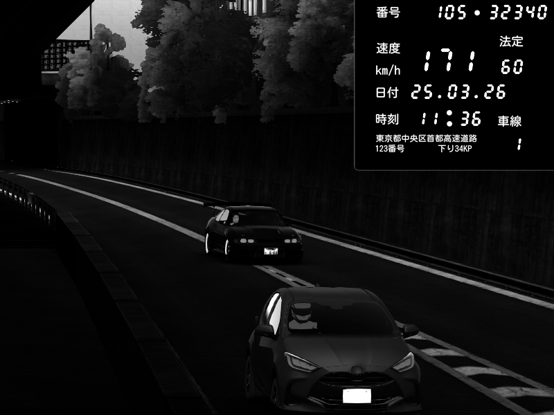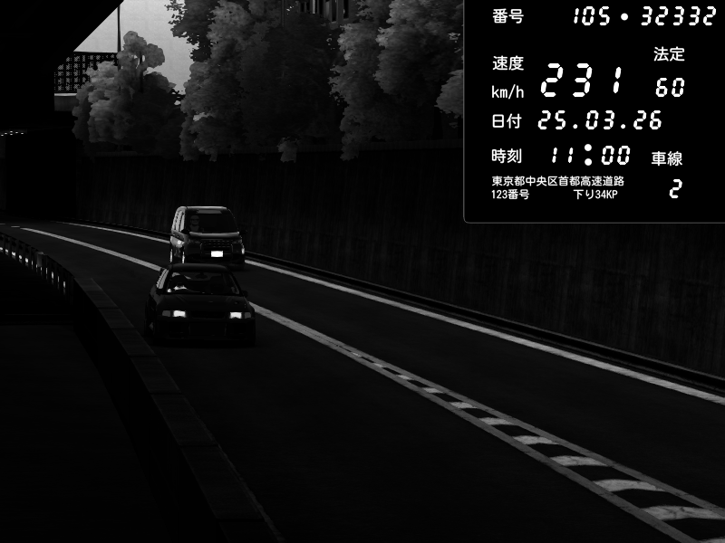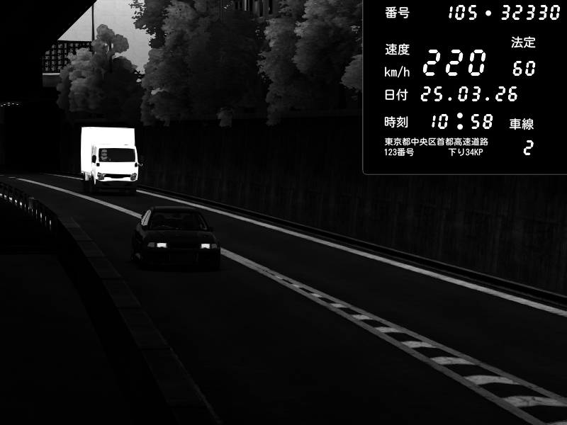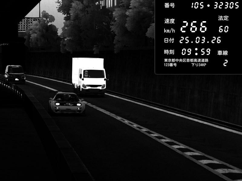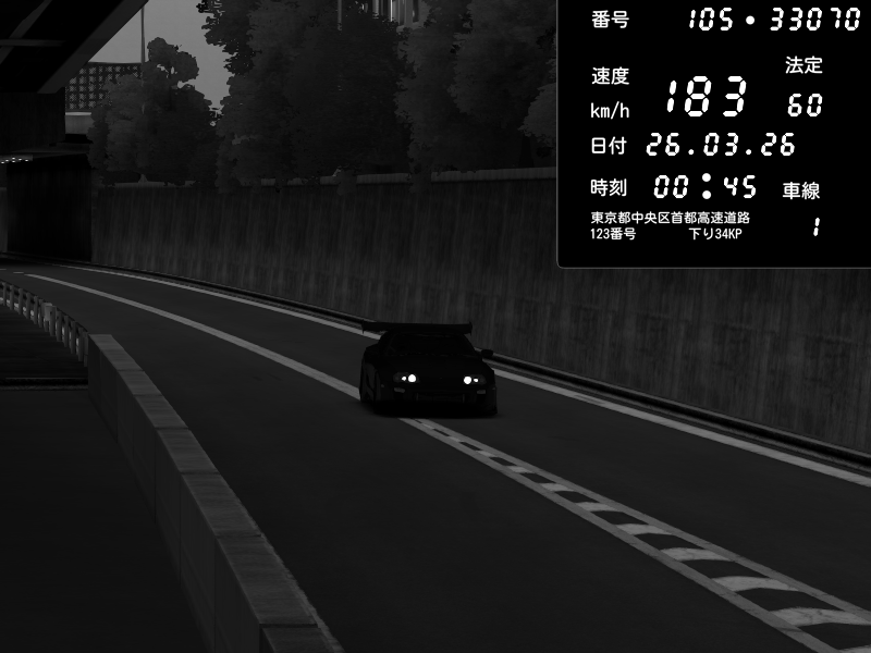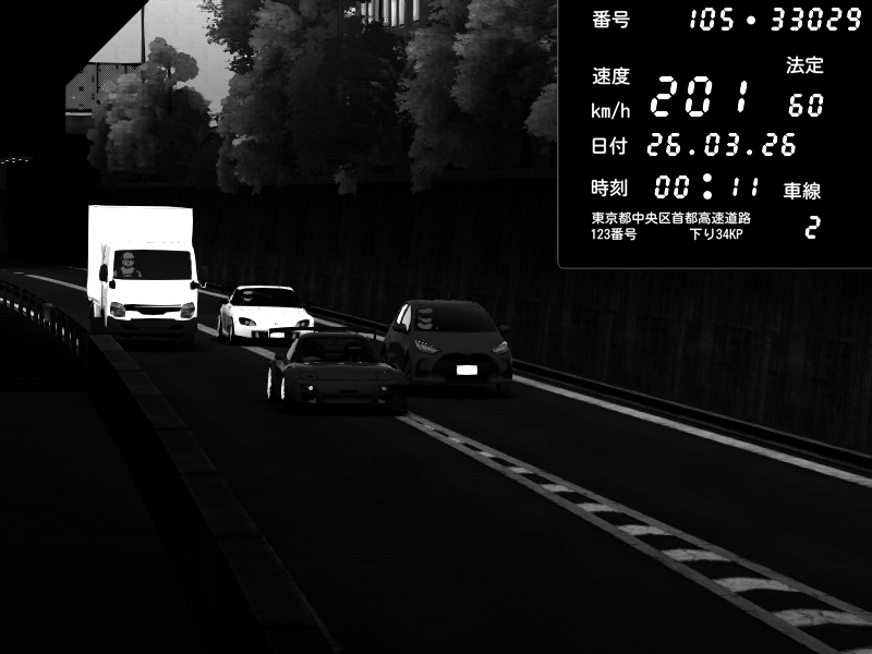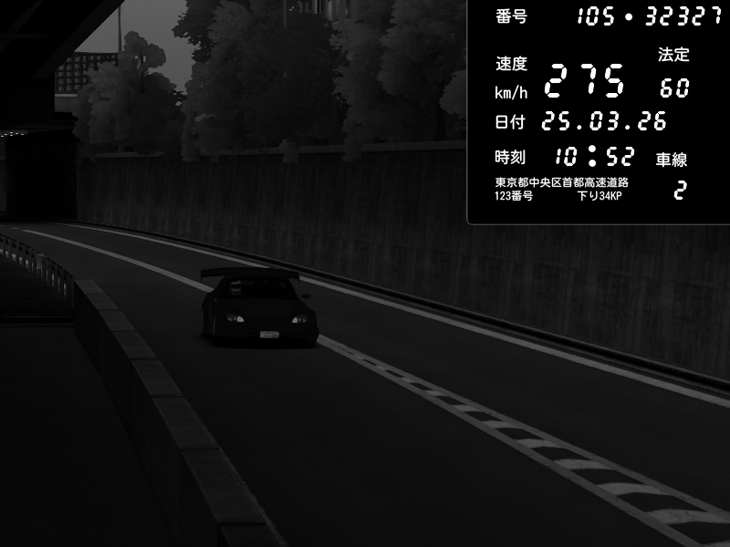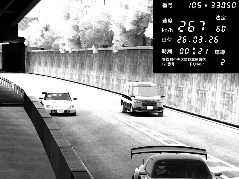 | 2026/03/25 11:36 | C1外回り 京橋 | 171 / 60 km/h | DELCASALE | Nissan Skyline GTR R33 (S3 - Wangan) | CAPTURE |