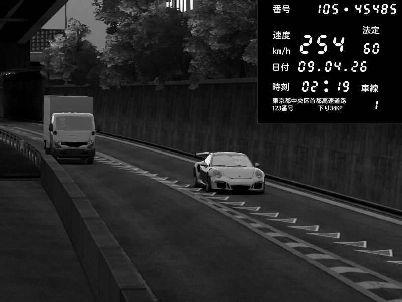 | 2026/04/09 02:19 | C1外回り 京橋 | 254 / 60 km/h | Chiyo | Porsche 911 GT3 RS | CAPTURE |