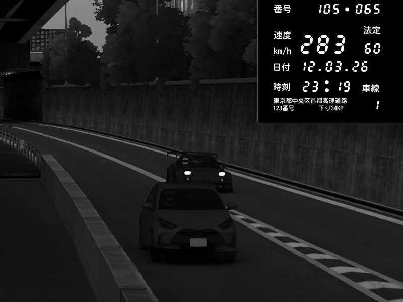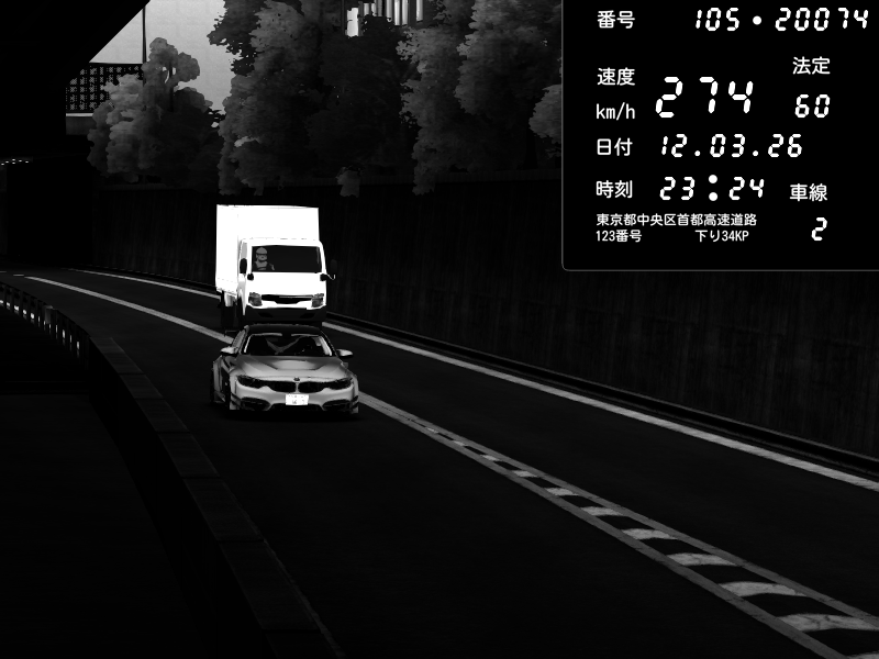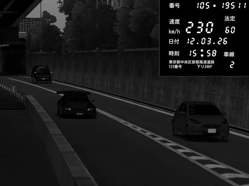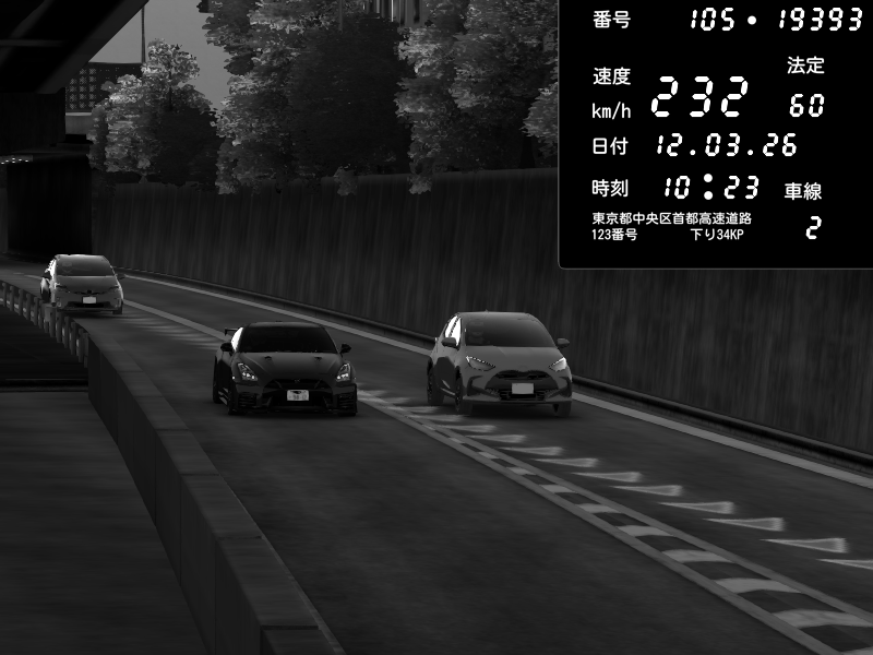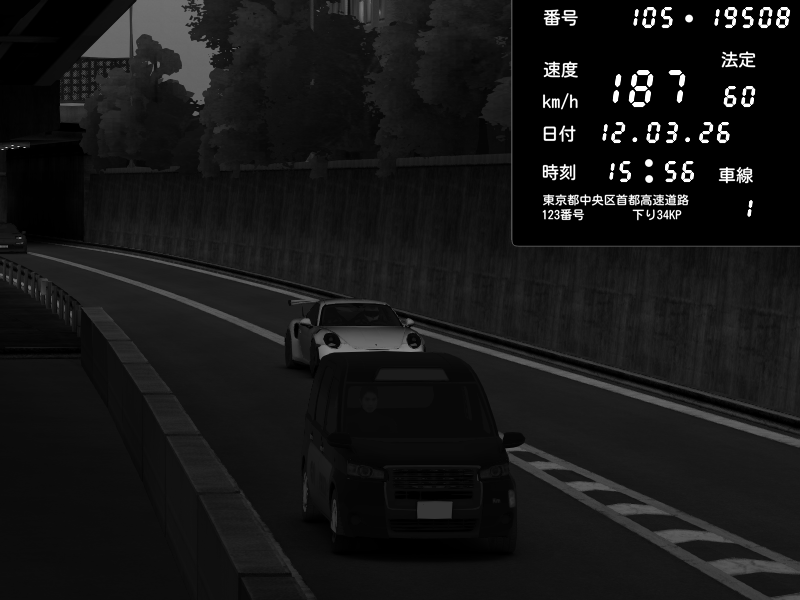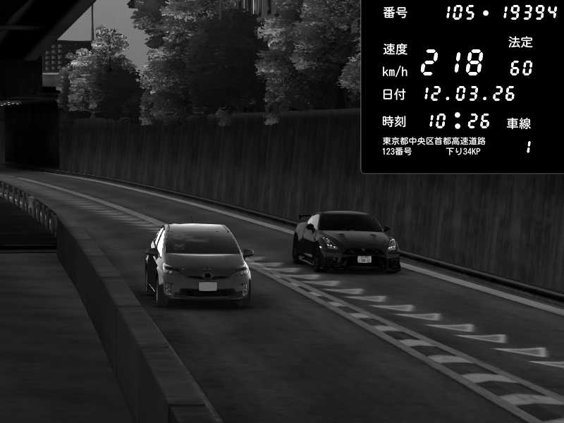| 2026/03/12 15:56 | C1外回り 京橋 | 187 / 60 km/h | Jzeroel | Porsche 911 GT3 RS | CAPTURE |