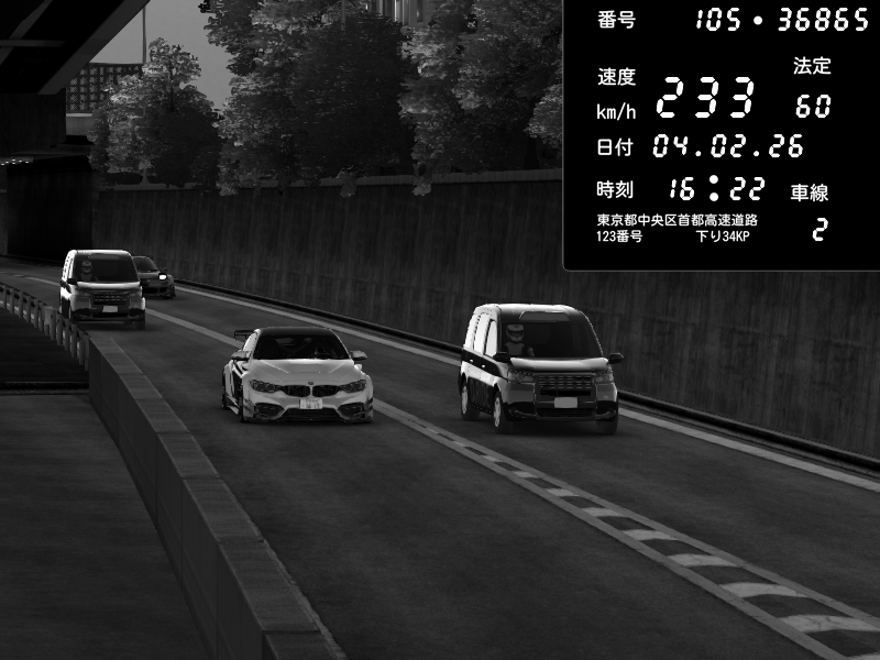 | 2026/02/05 01:59 | C1外回り 京橋 | 289 / 60 km/h | snow_mogul | BMW M4 crash.Sp Varis Widebody | CAPTURE |