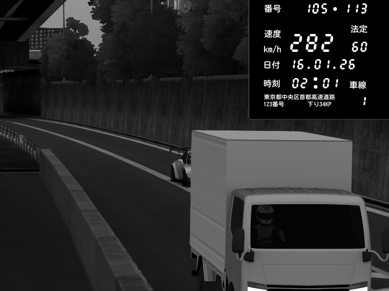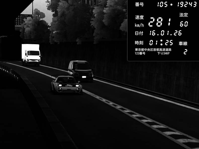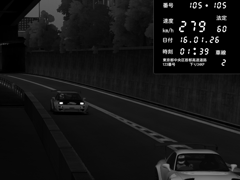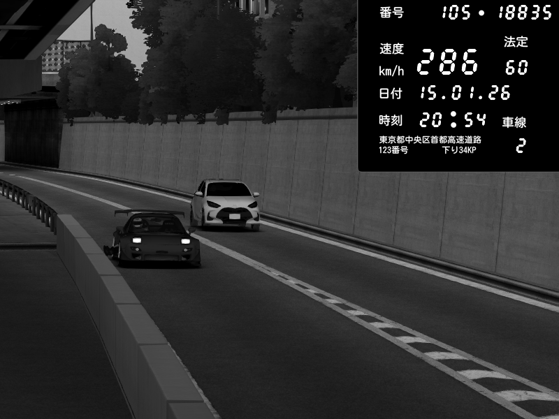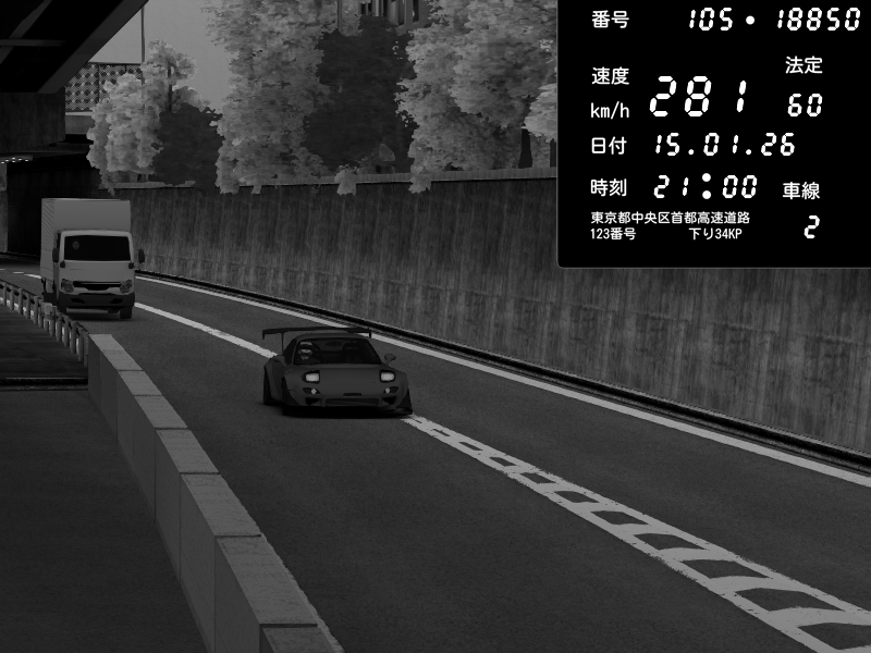 | 2026/01/15 20:50 | C1外回り 京橋 | 281 / 60 km/h | REO | Honda S2000 Turbo GT1 Amuse (AP1) | CAPTURE |