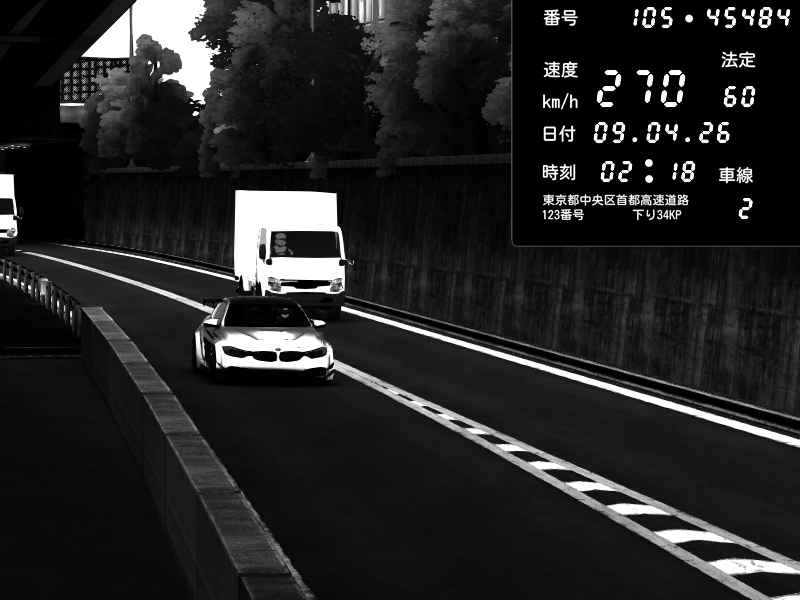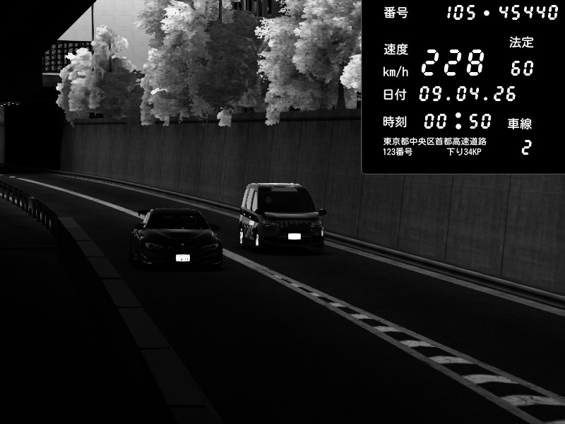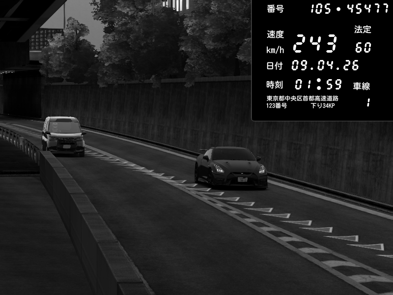 | 2026/04/09 01:59 | C1外回り 京橋 | 243 / 60 km/h | Chiyo | Nissan GT-R NISMO 2017 | CAPTURE |