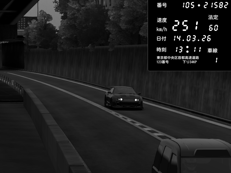 | 2026/03/14 13:11 | C1外回り 京橋 | 251 / 60 km/h | nuyui209 | Toyota Supra MKIV Time Attack | CAPTURE |