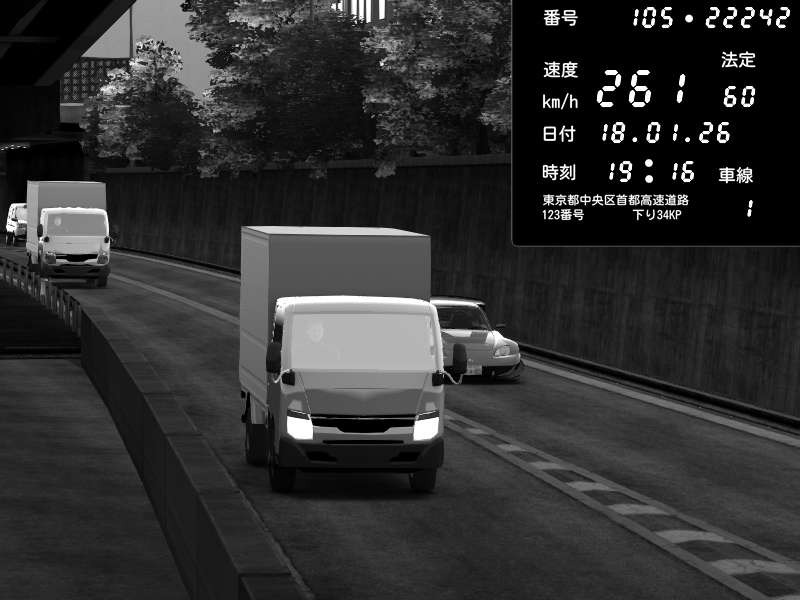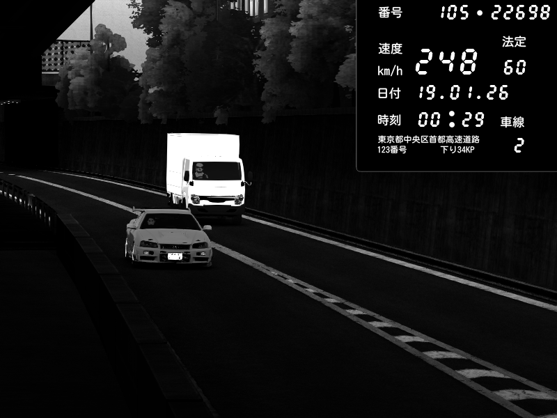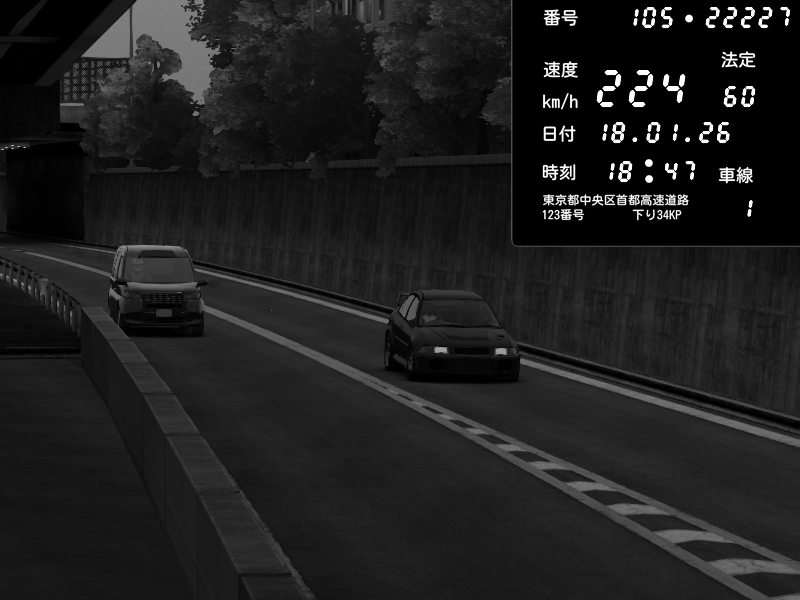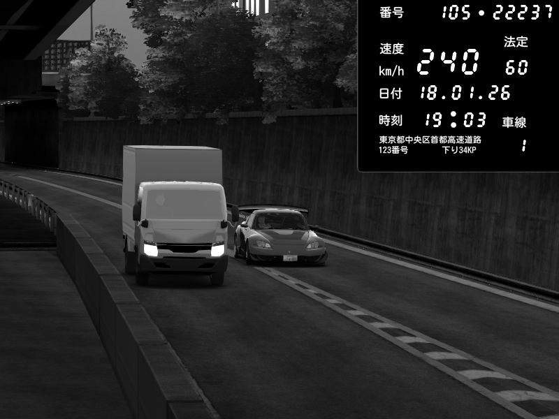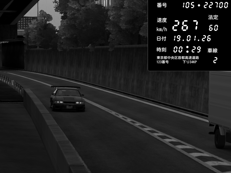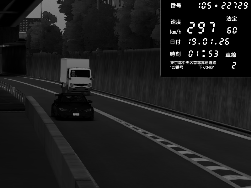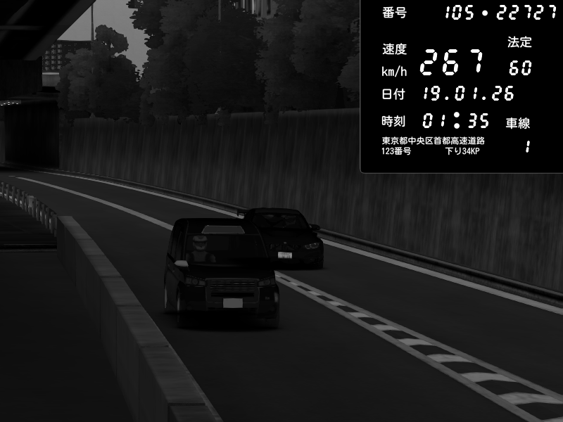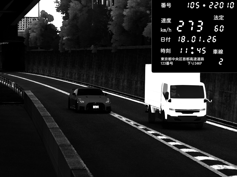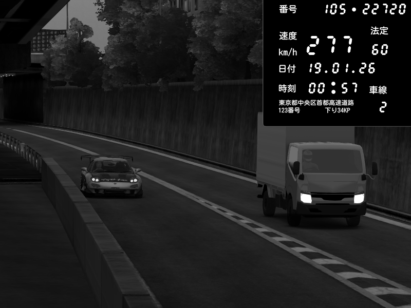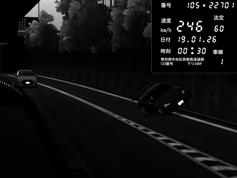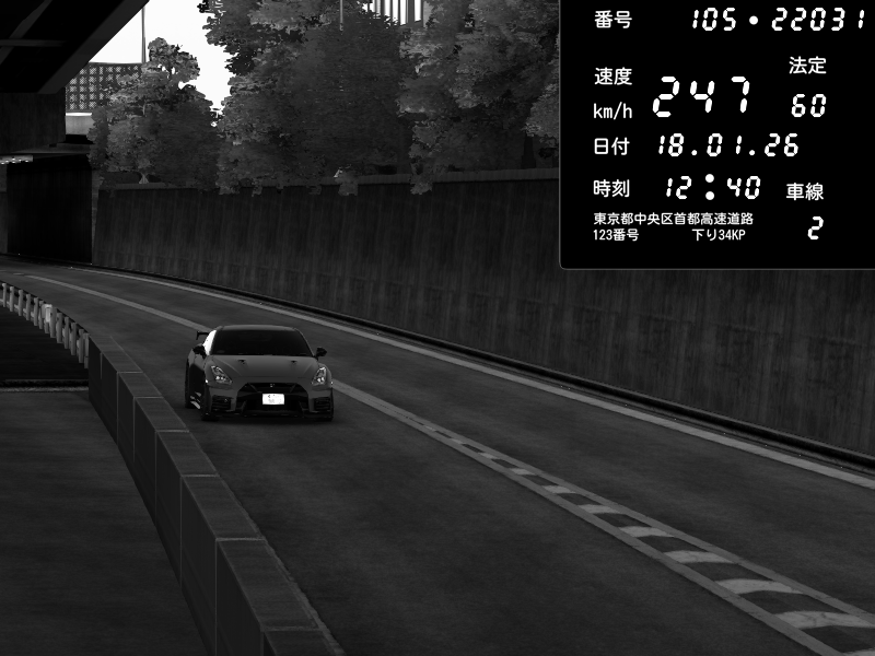 | 2026/01/19 02:19 | C1外回り 京橋 | 271 / 60 km/h | SoftHard | Nissan GT-R NISMO 2017 | CAPTURE |