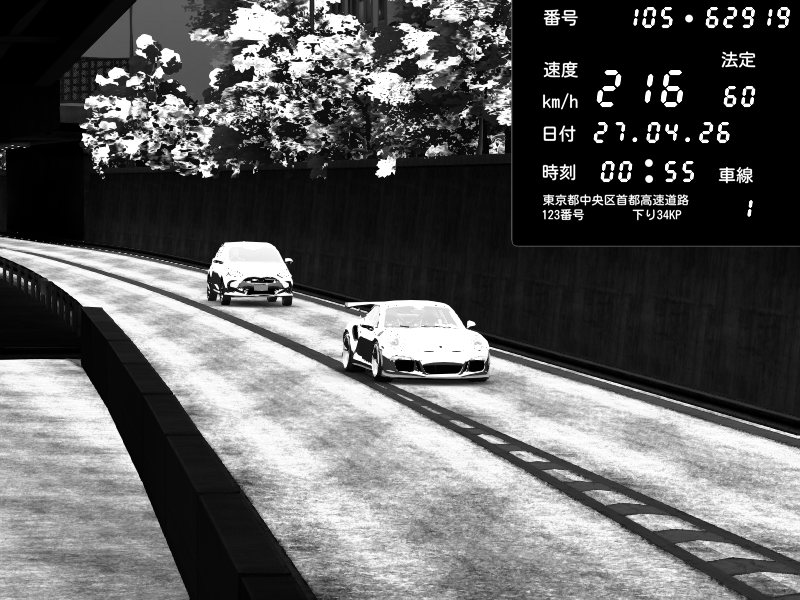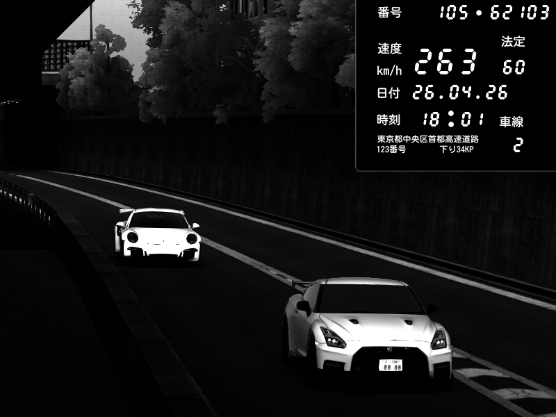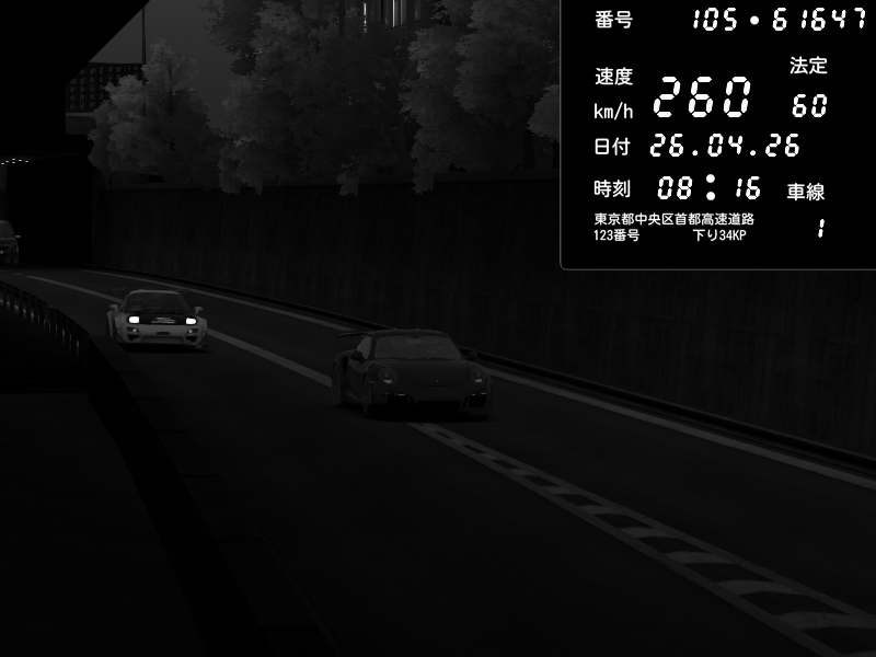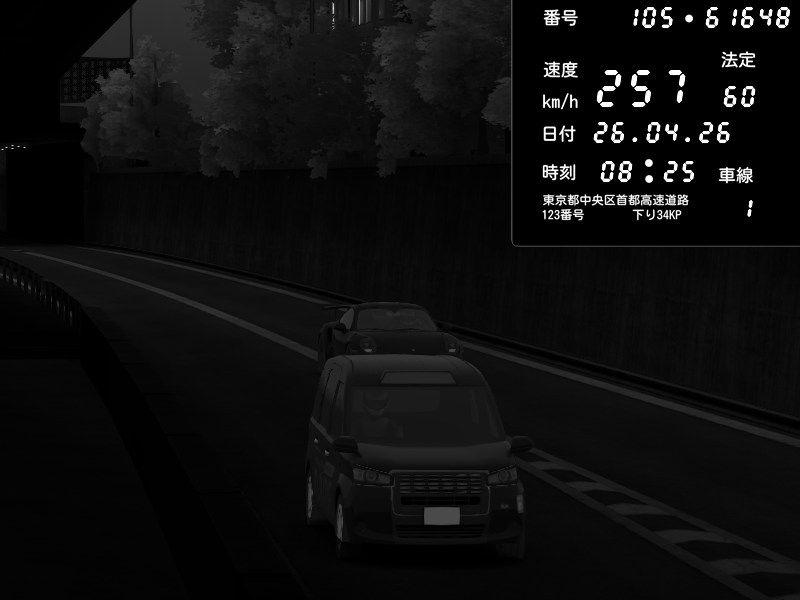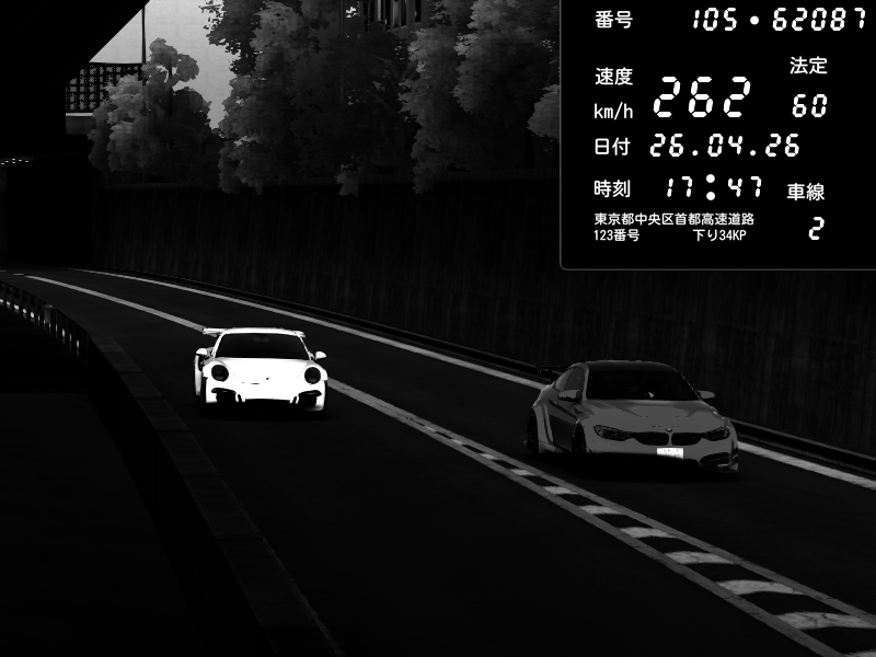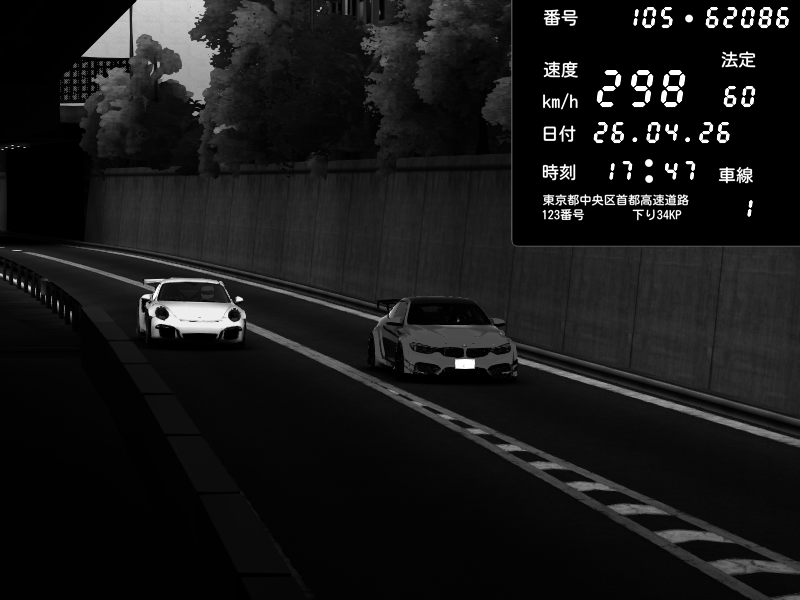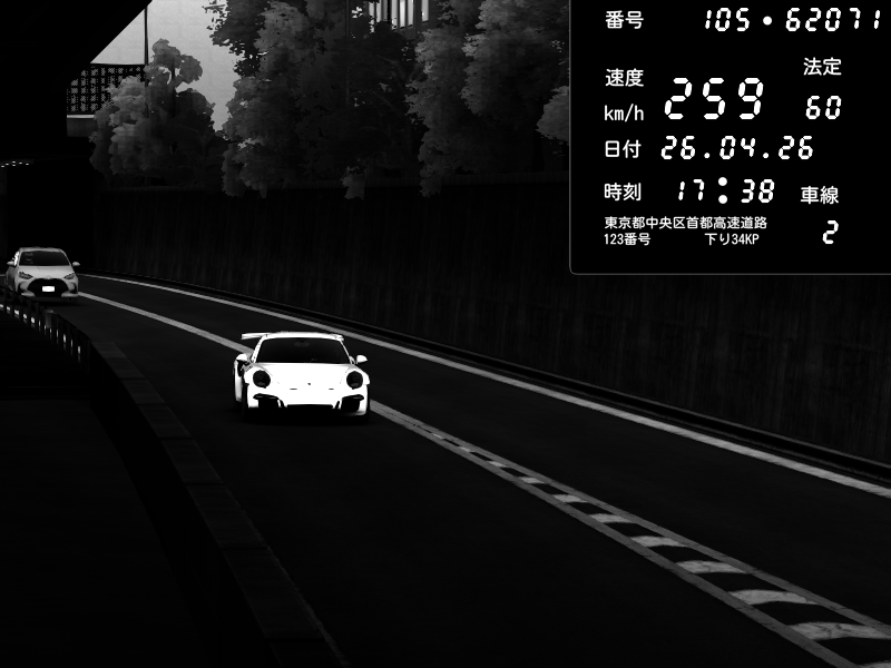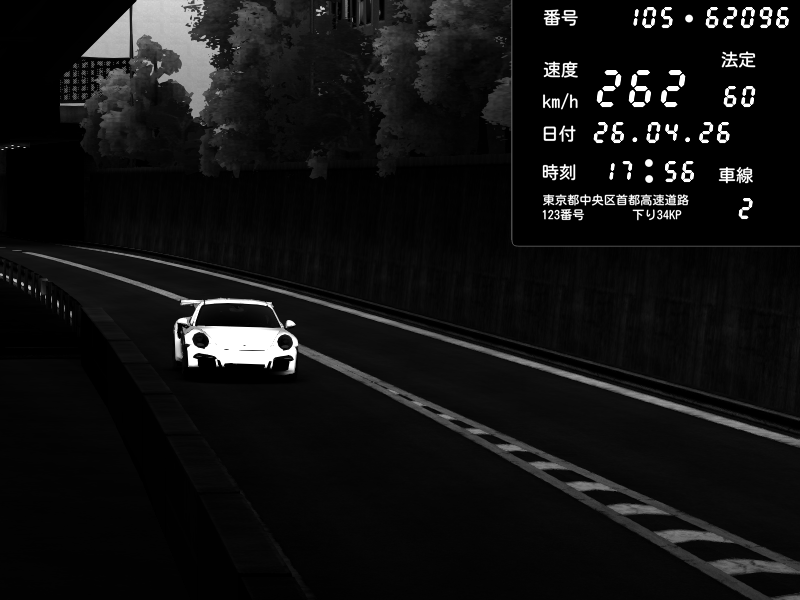 | 2026/04/26 08:25 | C1外回り 京橋 | 257 / 60 km/h | colyth | Porsche 911 GT3 RS | CAPTURE |