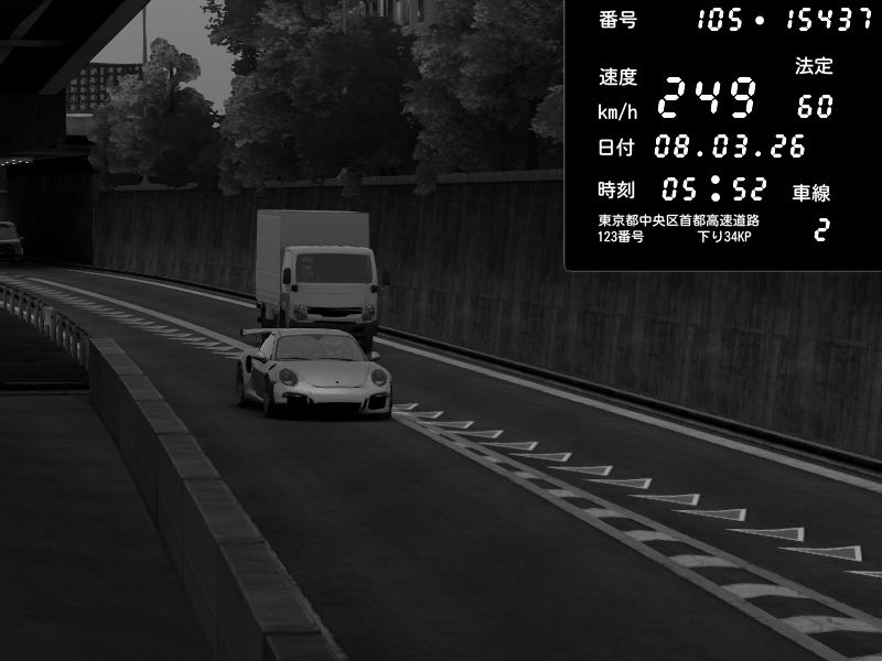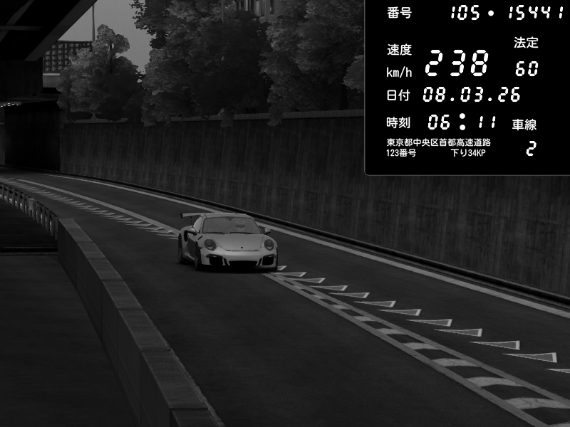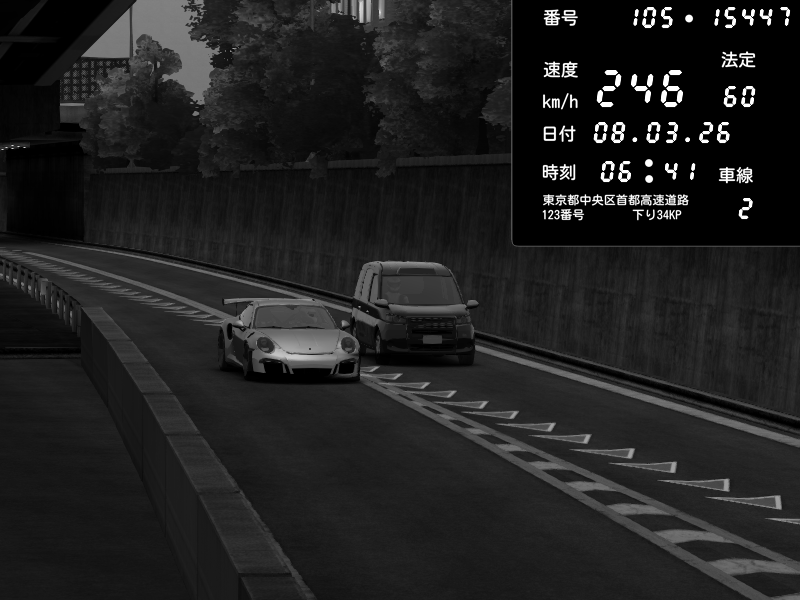 | 2026/03/08 05:38 | C1外回り 京橋 | 186 / 60 km/h | vivi.gilles | Porsche 911 GT3 RS | CAPTURE |