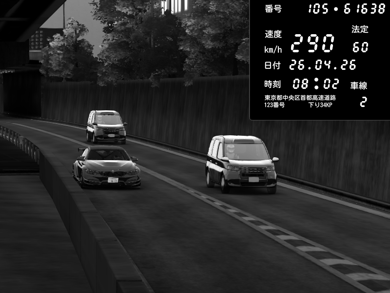 | 2026/04/26 08:49 | C1外回り 京橋 | 290 / 60 km/h | boo481130 | BMW M4 crash.Sp Varis Widebody | CAPTURE |