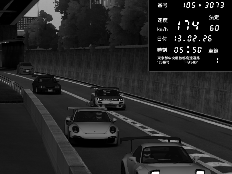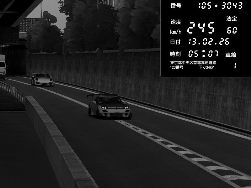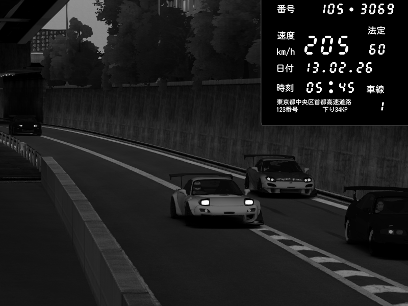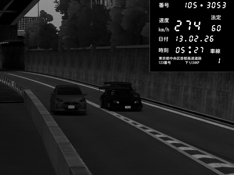 | 2026/02/12 07:15 | C1外回り 京橋 | 256 / 60 km/h | YukinoHiKi | Mazda RX-7 FD3S FEED Afflux GT3 | CAPTURE |