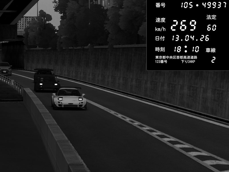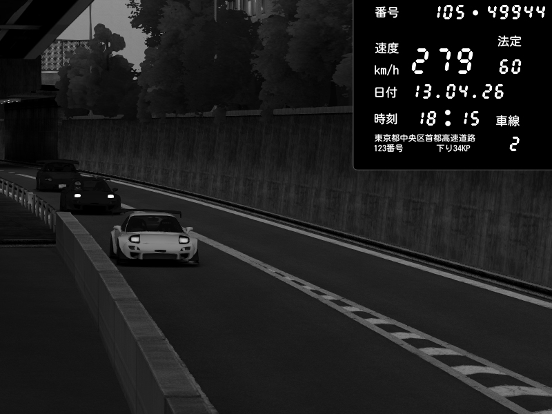 | 2026/04/13 18:10 | C1外回り 京橋 | 202 / 60 km/h | metrinzzZ | Mazda RX-7 FD3S RE Amemiya | CAPTURE |