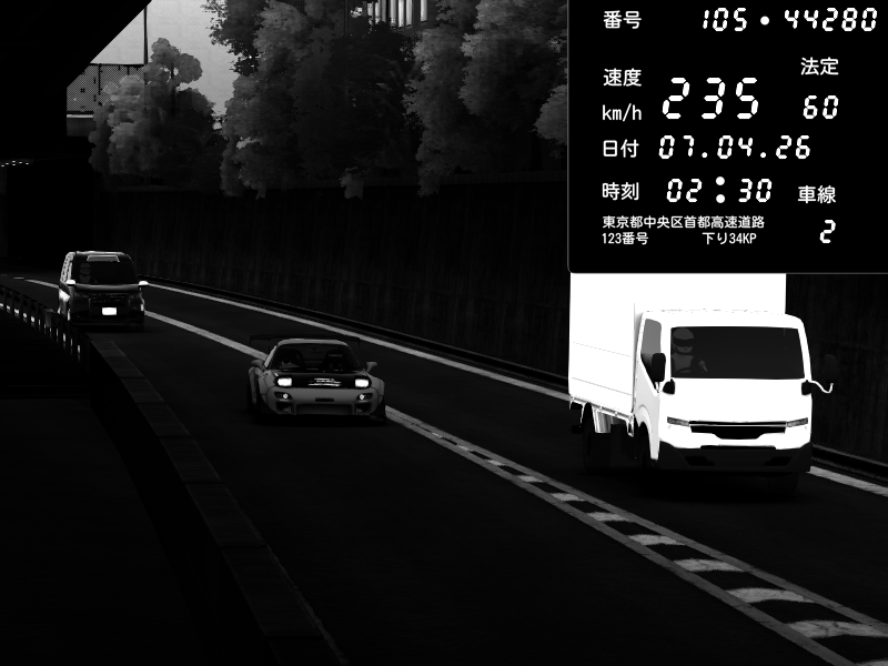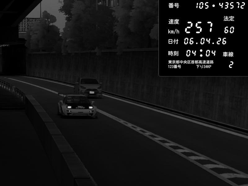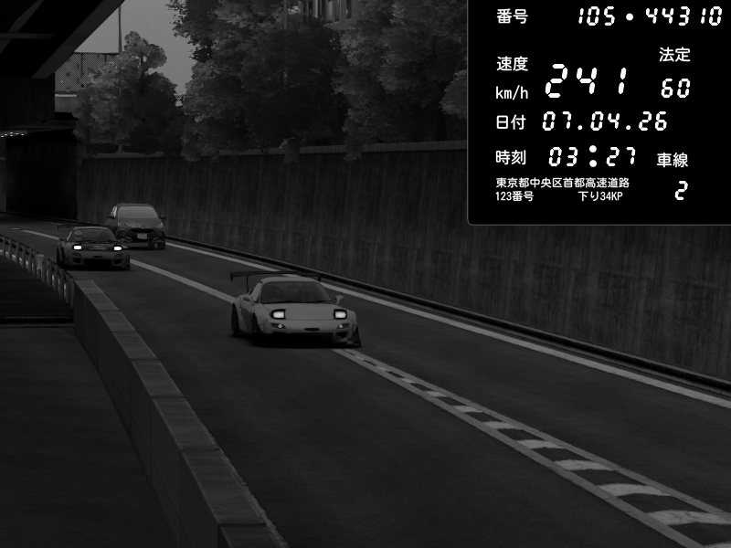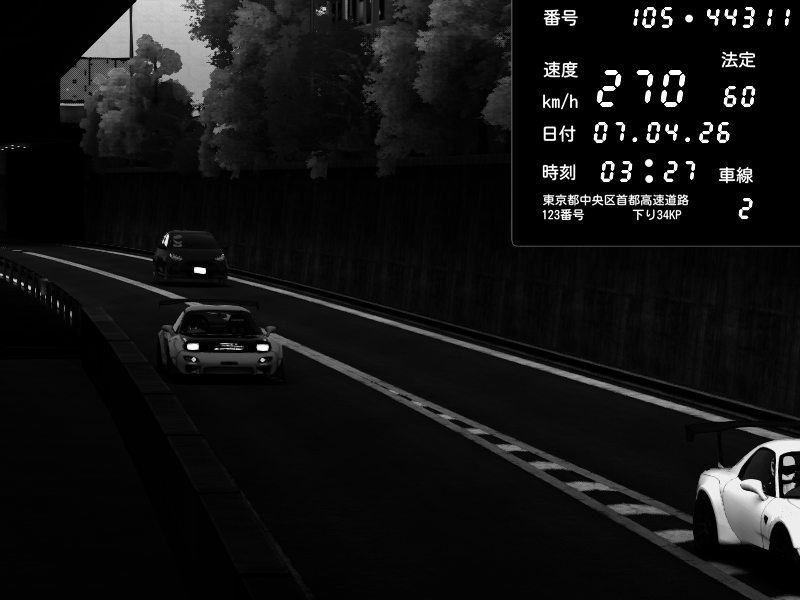 | 2026/04/07 02:38 | C1外回り 京橋 | 281 / 60 km/h | Retuski | Mazda RX-7 FD3S FEED Afflux GT3 | CAPTURE |