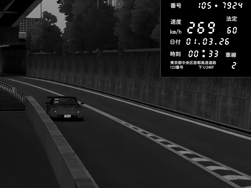 | 2026/03/01 00:33 | C1外回り 京橋 | 269 / 60 km/h | monaco-911senna | Honda S2000 (AP2 - Legendary) | CAPTURE |