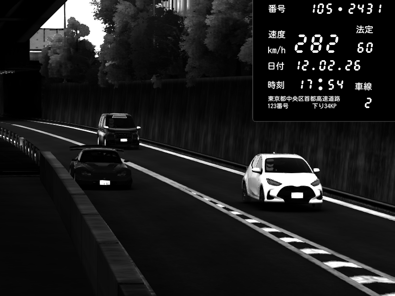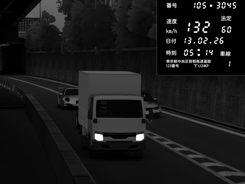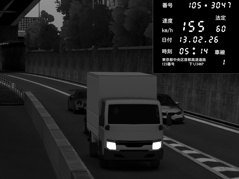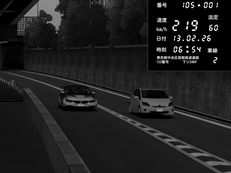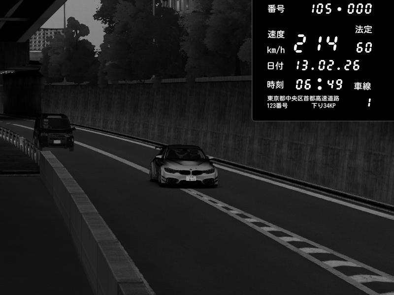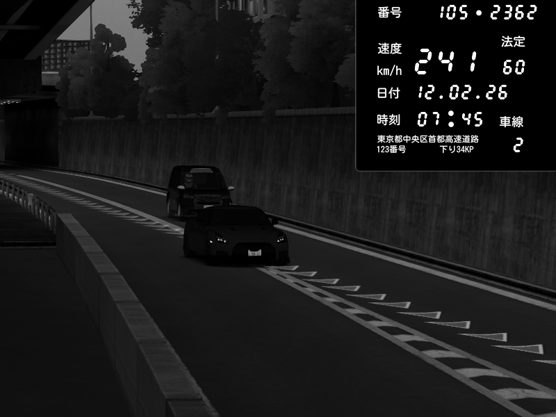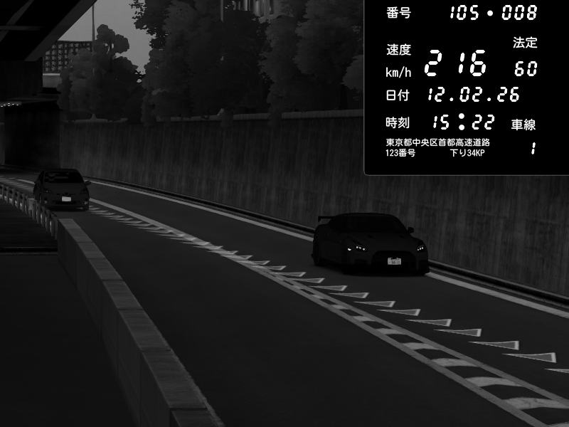 | 2026/02/12 05:38 | C1外回り 京橋 | 209 / 60 km/h | Ficinski | Nissan GT-R NISMO 2017 | CAPTURE |